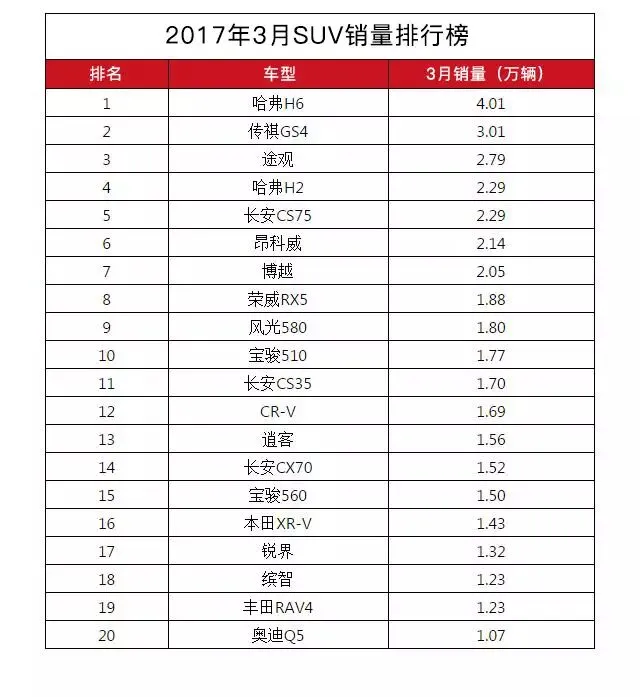 3月份SUV市场终于有了些回暖迹象