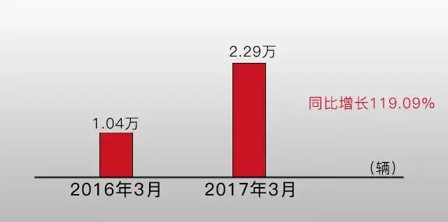 但是相比较去年3月同比增长为119.09%