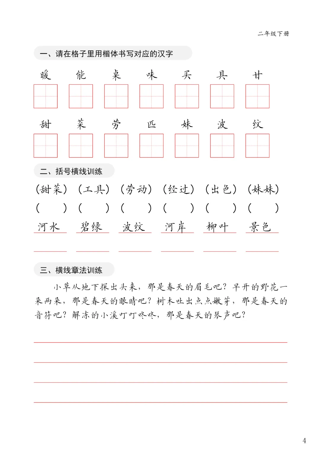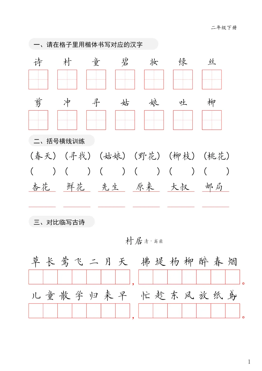 2026年《二年级下册课文同步练字帖》电子版可打印