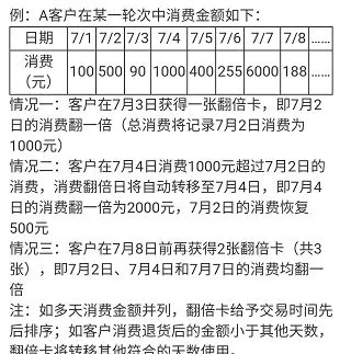 翻倍金额随客户每天消费情况动态更新,数据统计至T-2日,T为查询日;