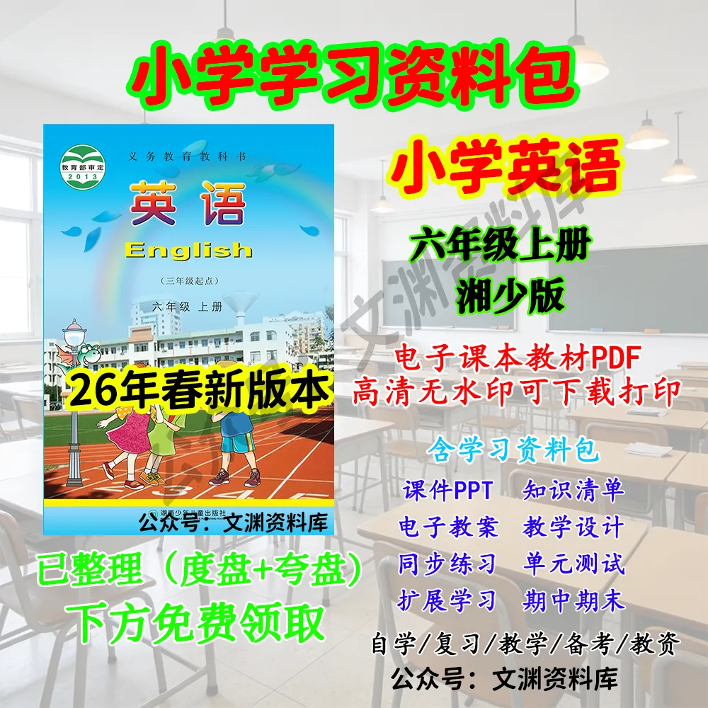 26年春新小学英语六年级上册湘少版电子课本教材pdf高清无水印可下载打印预习复习备考教学学习专用