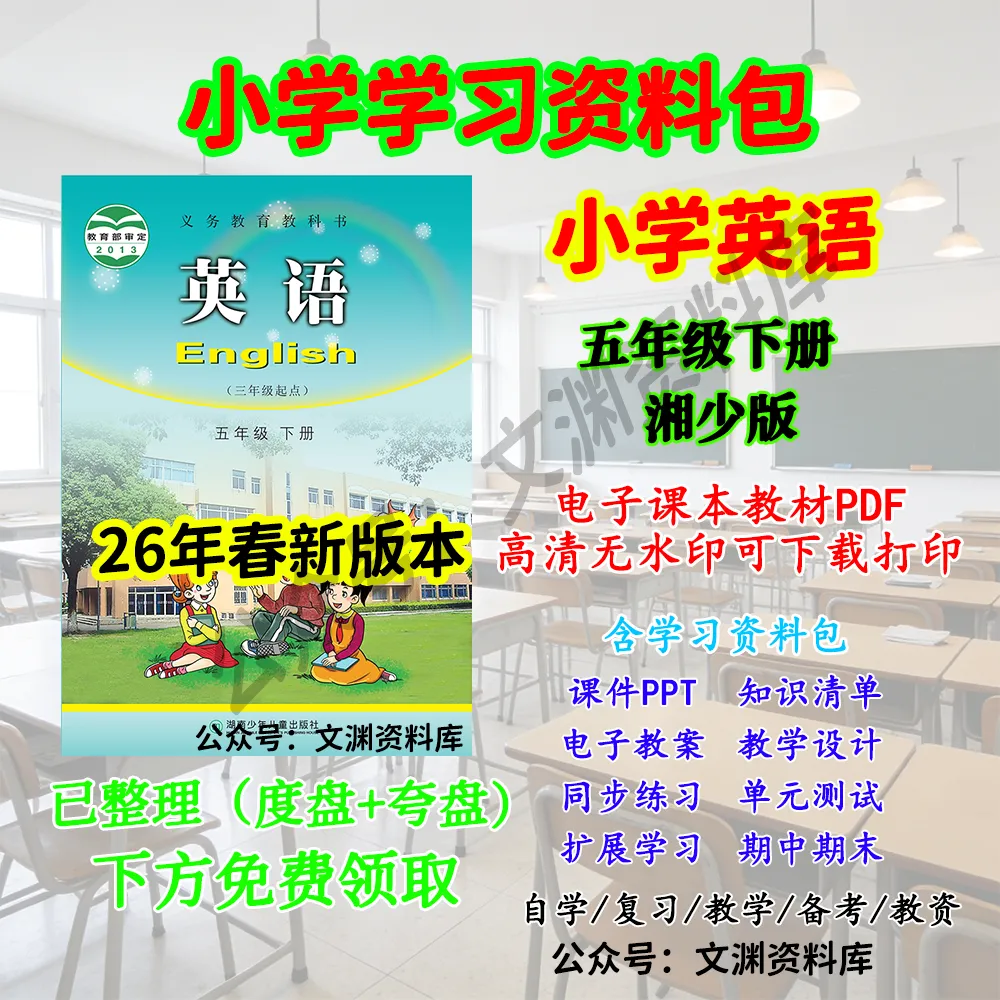 26年春新小学英语五年级下册湘少版电子课本教材pdf高清无水印可下载打印预习复习备考教学学习专用
