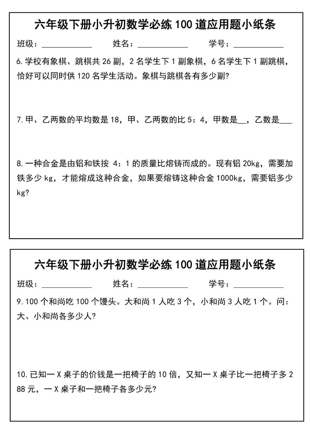 26春六年级下册数学寒假思维题|完整高清电子版可打印!