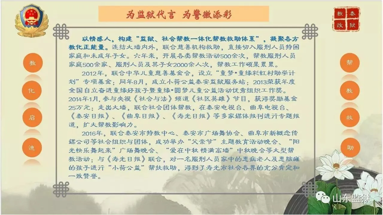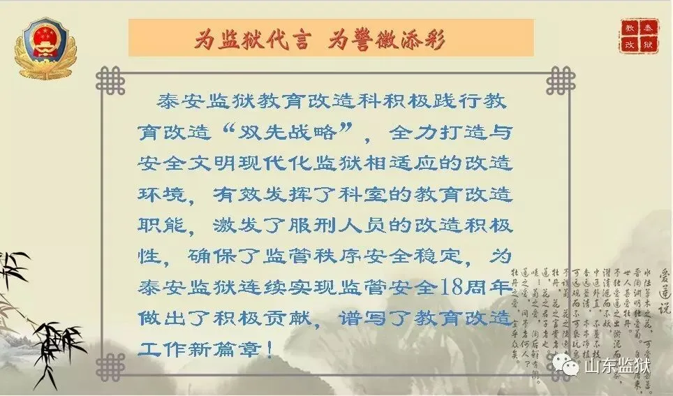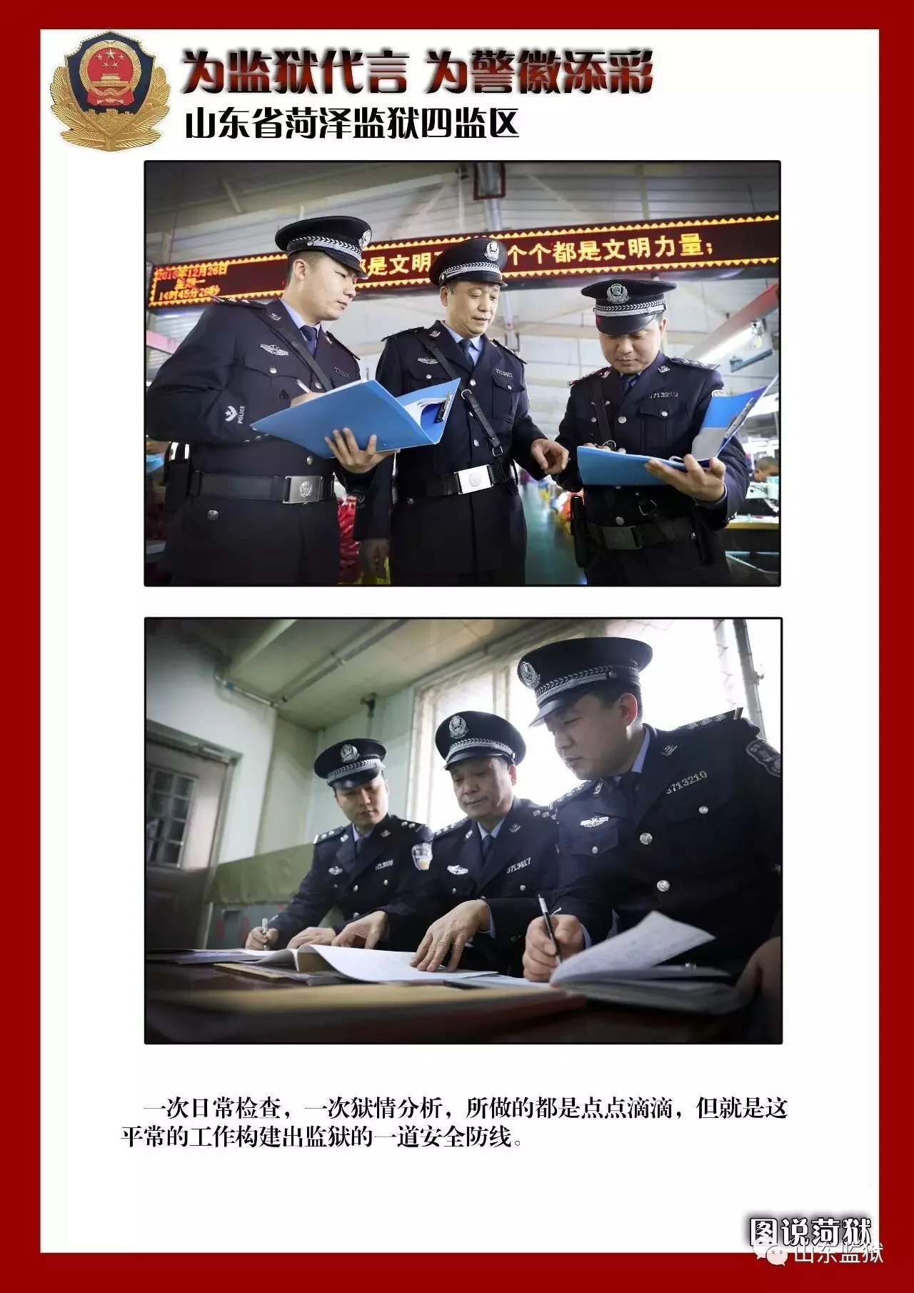 我们山东监狱警察团队一直在努力。
