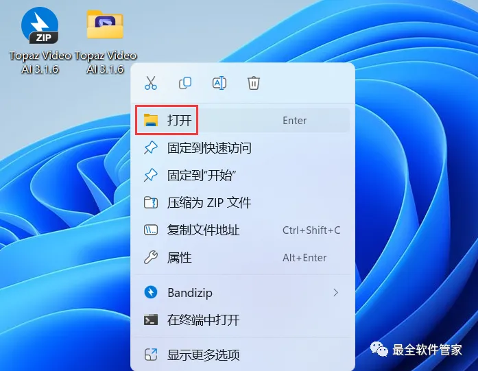 1、下载Topaz Video AI 3.1.6软件安装包到电脑上,右键选择【解压到Topaz Video AI 3.1.6\】