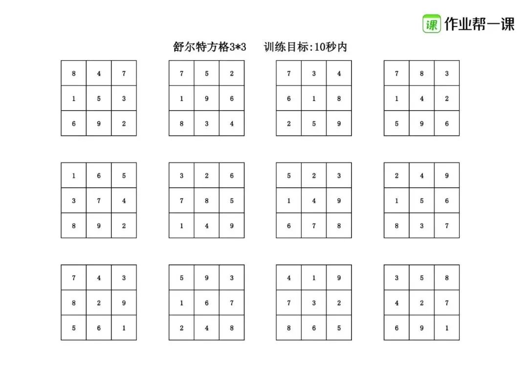 幼小衔接|专注力训练之舒尔特方格 电子版可打印下载