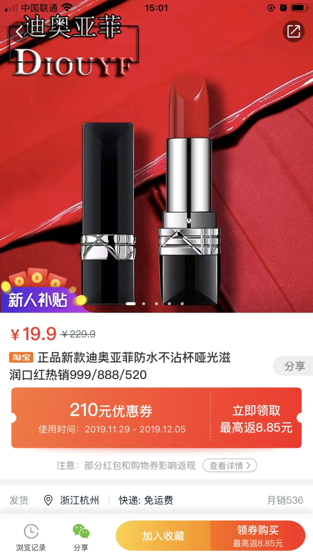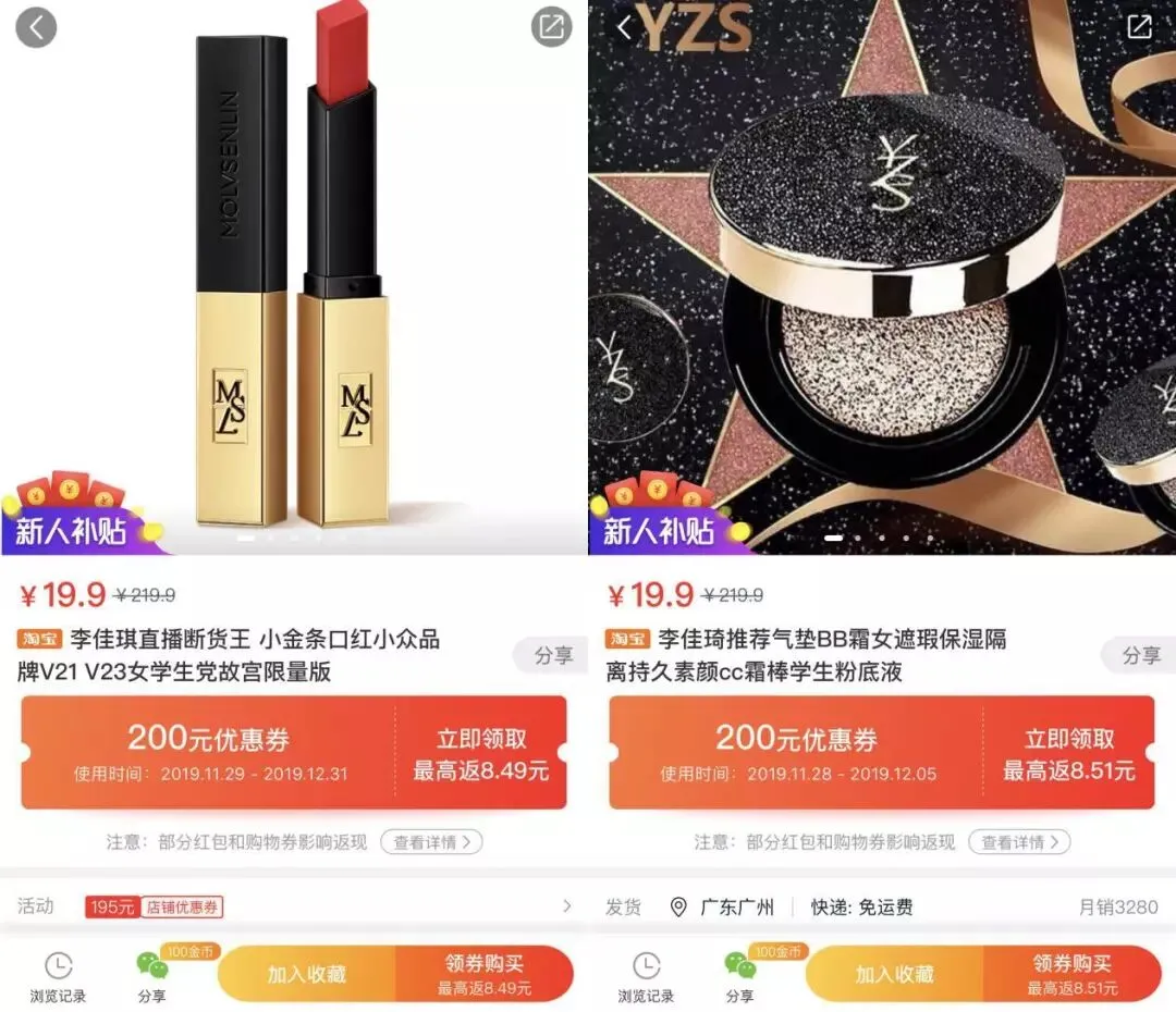 还有的打着“淘宝内部优惠券”等等名号,什么大牌口红超低价,商场同款一元购等等…