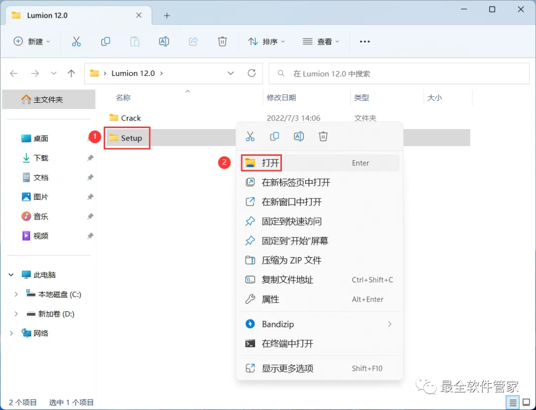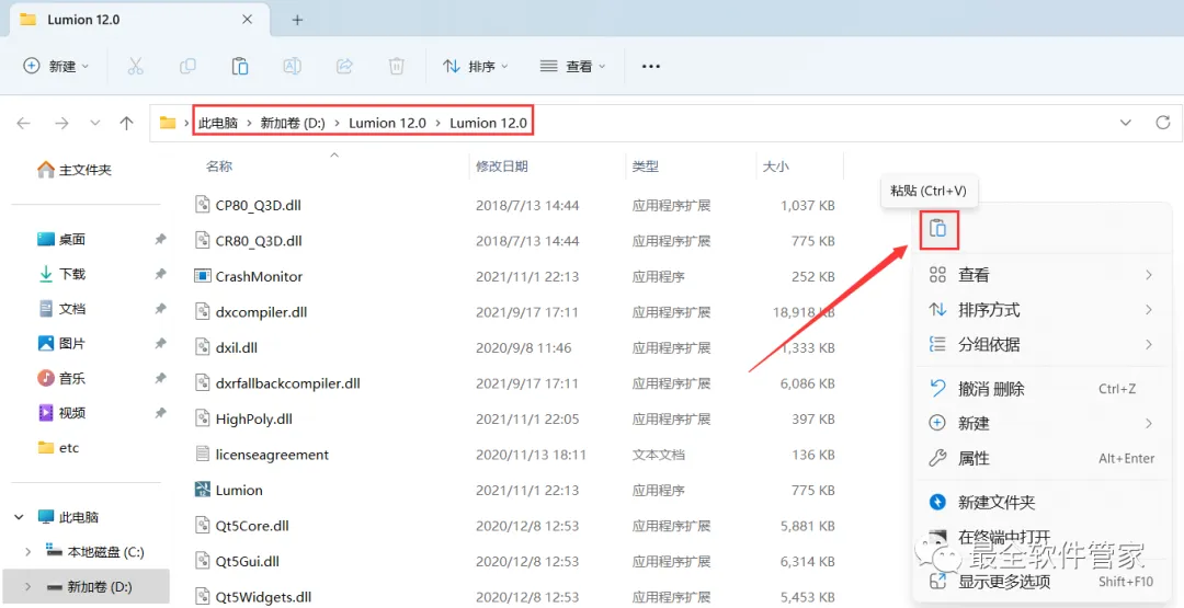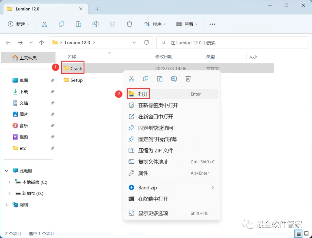 20、回到Lumion 12.0文件夹,找到【Crack】文件夹,右键【打开】它