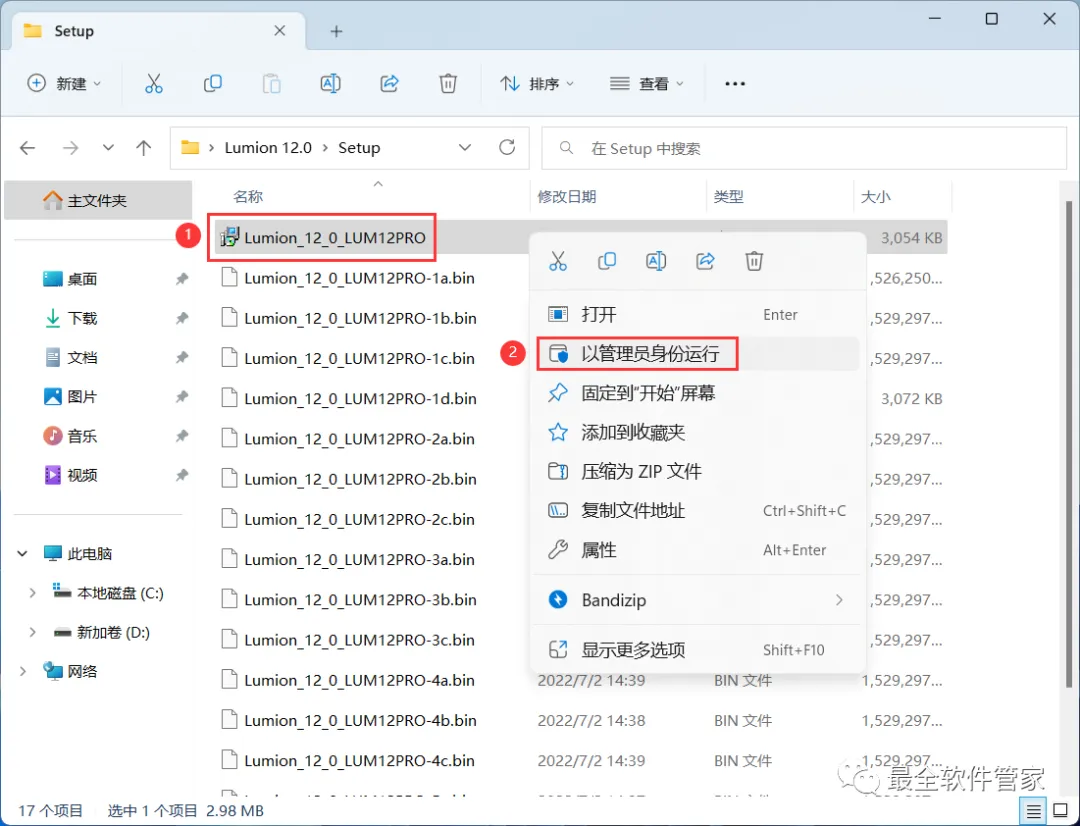 24、找到粘贴的【lumion.pro.v12】应用程序,右键选择【以管理员身份运行】它