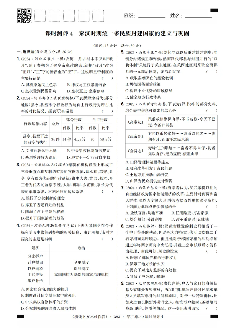 2026版金版新学案学生用书pdf版高考历史通史版精准集训