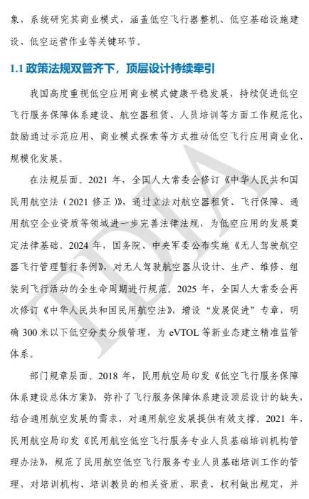 本报告旨在围绕低空飞行器、低空基础设施、低空运营作业等环节,分析现有的低空应用商业模式,剖析现有商业模式 的演变趋势,提出关于形成健康可持续商业模式的发展建议。