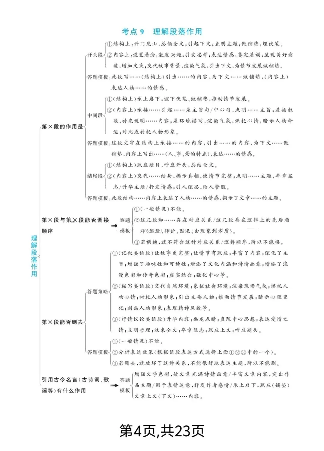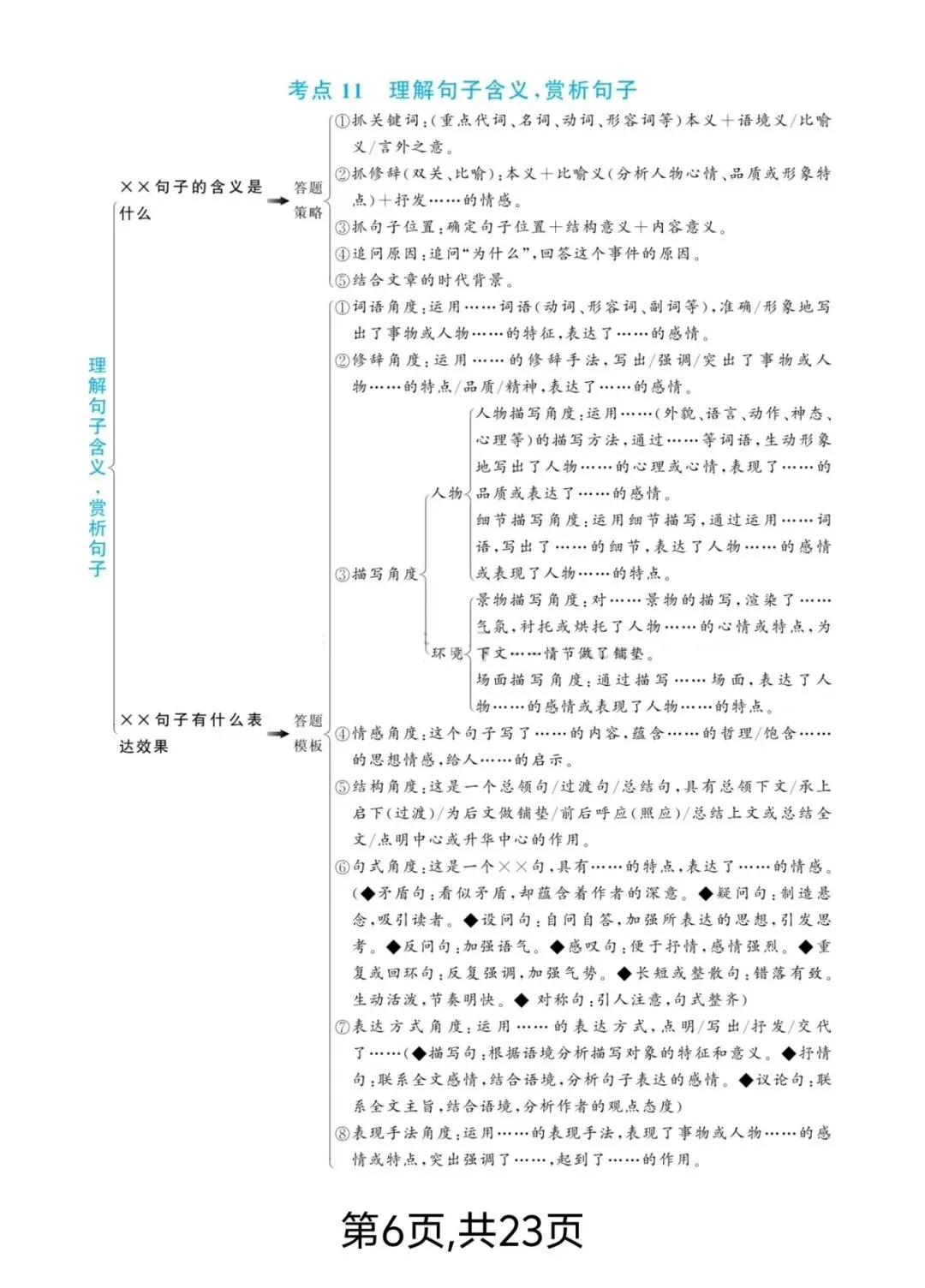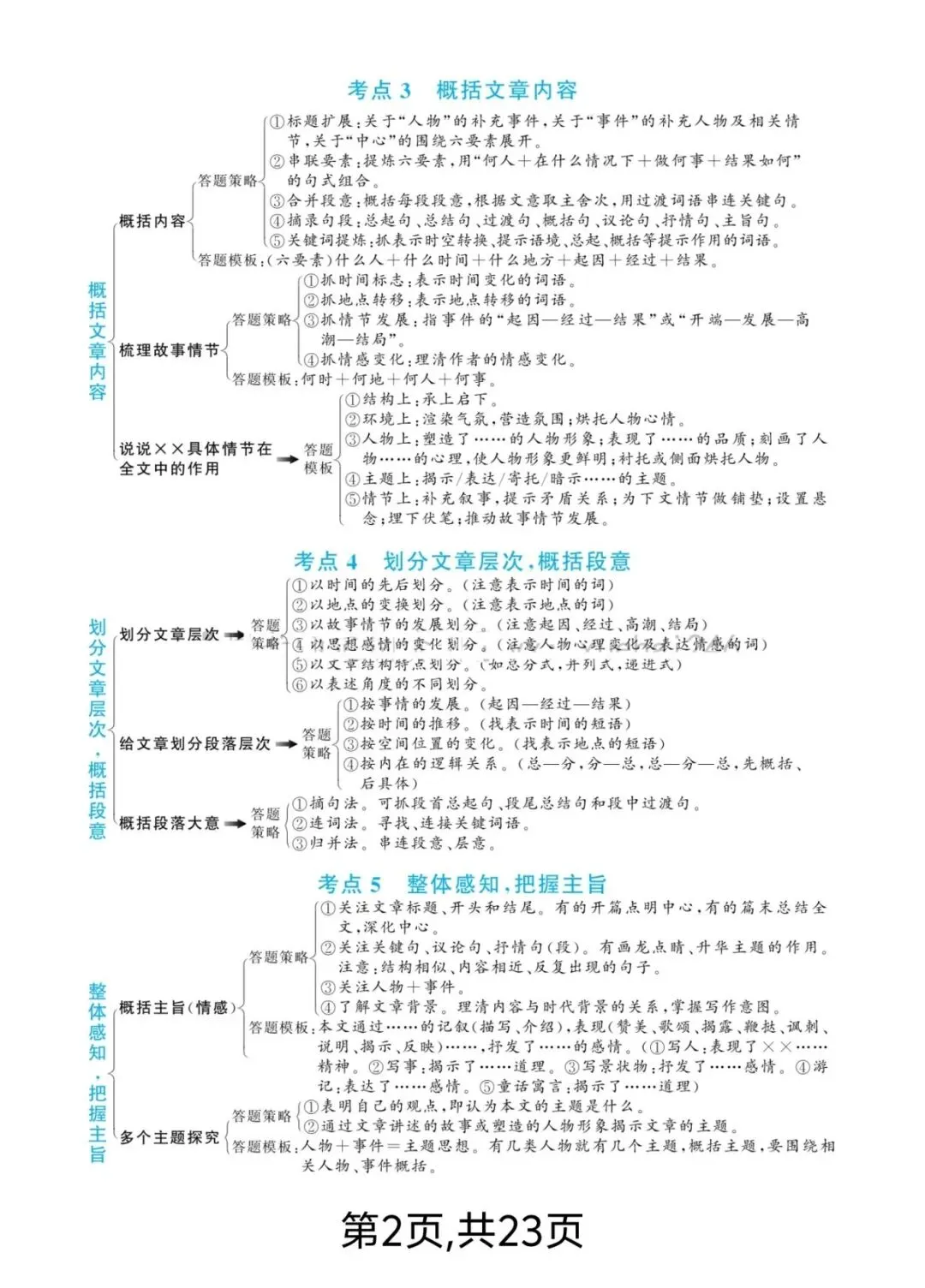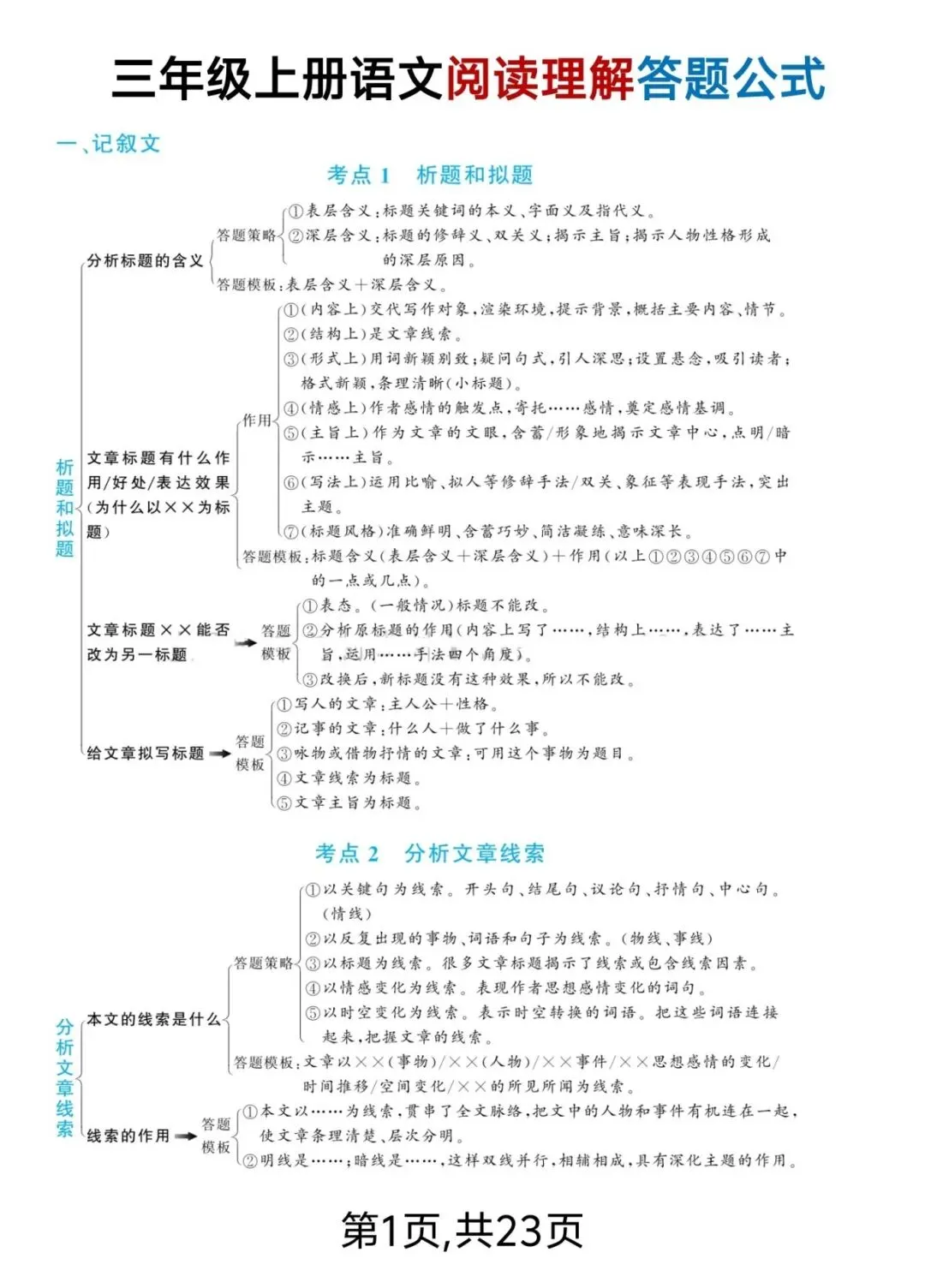 三年级上册语文阅读理解答题公式,电子版可下载打印