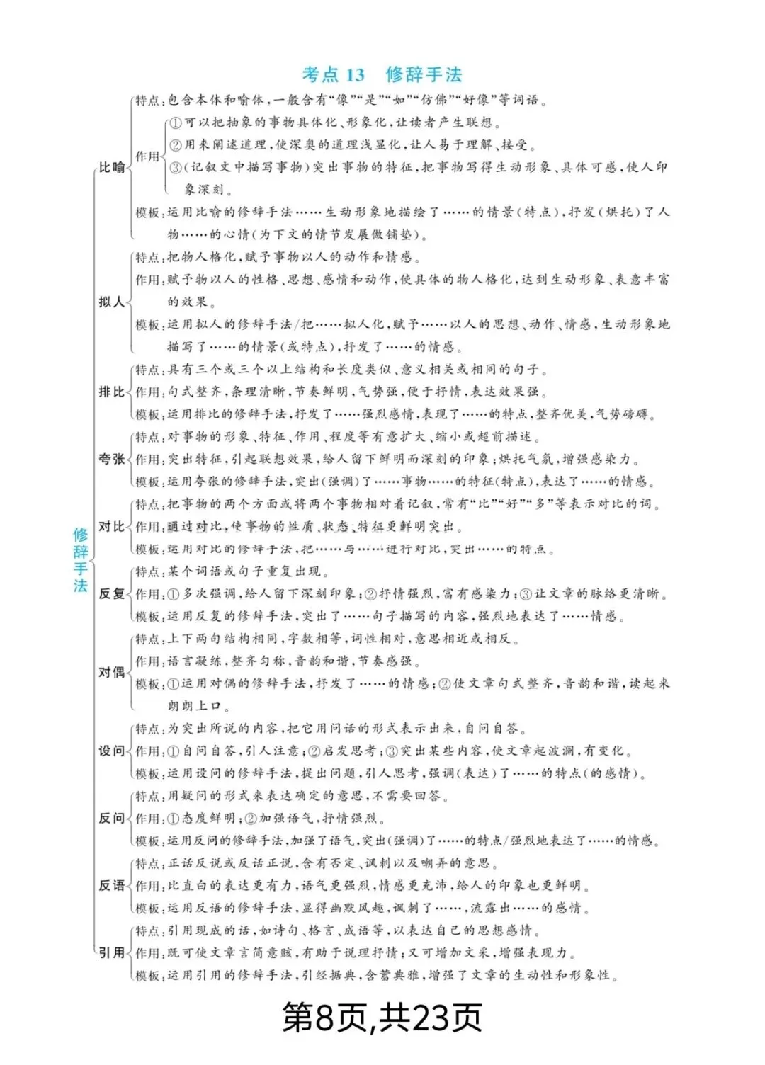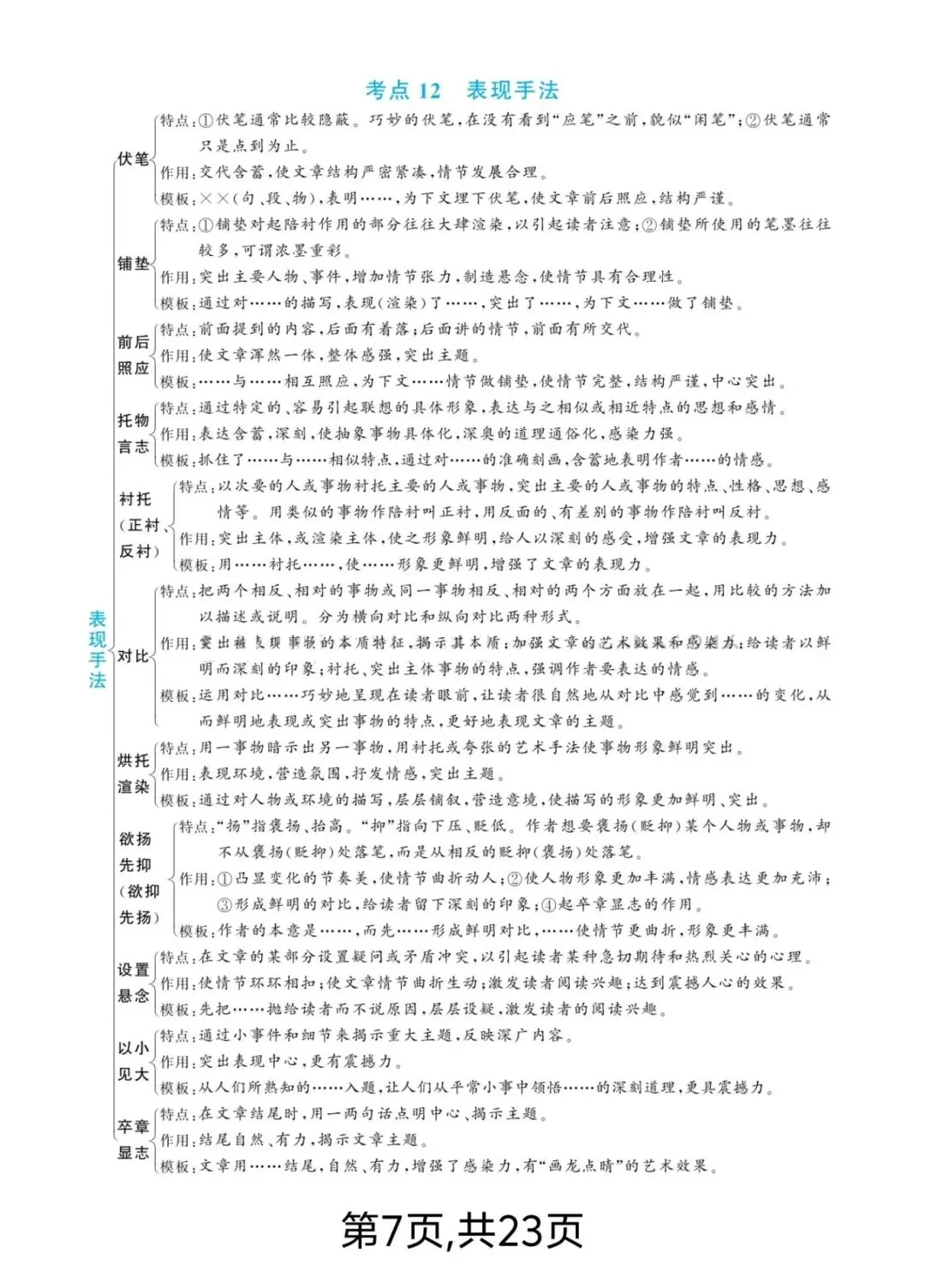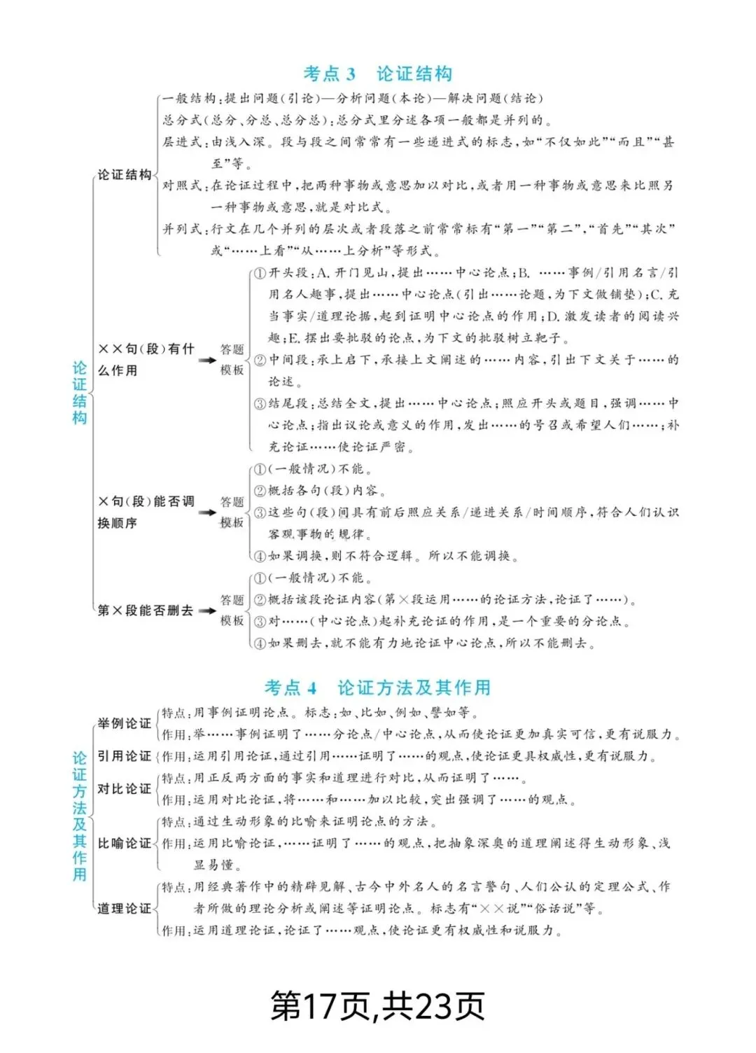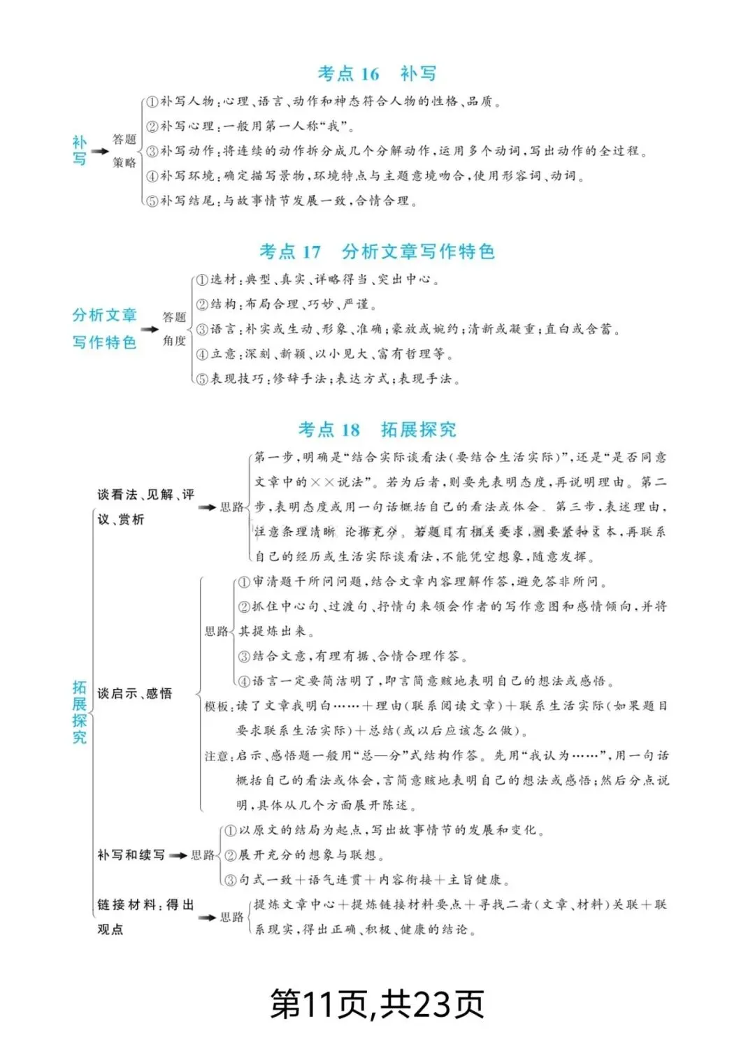 三年级上册语文阅读理解答题公式,电子版可下载打印