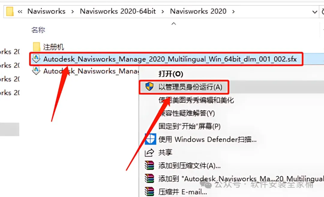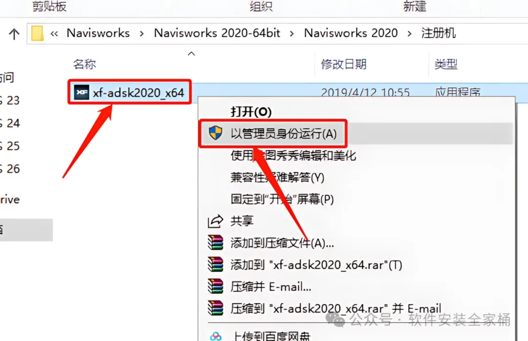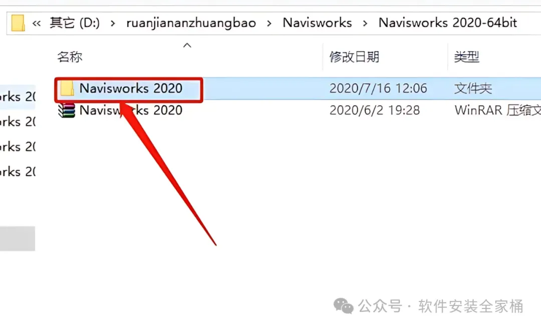 1.打开下载好的软件安装包,鼠标右击【Navisworks 2020】压缩包,选择【解压到Navisworks 2020】。