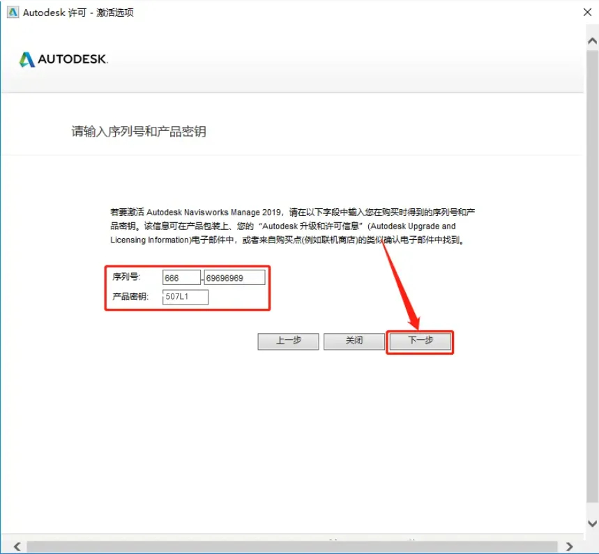 18.输入序列号:666-69696969,产品密钥:507L1,然后点击【下一步】。