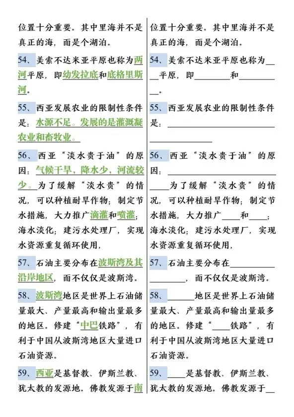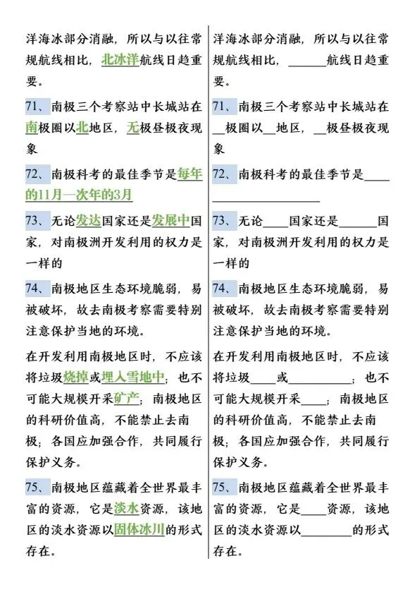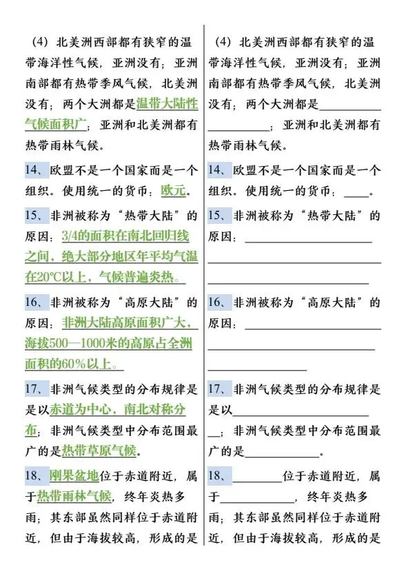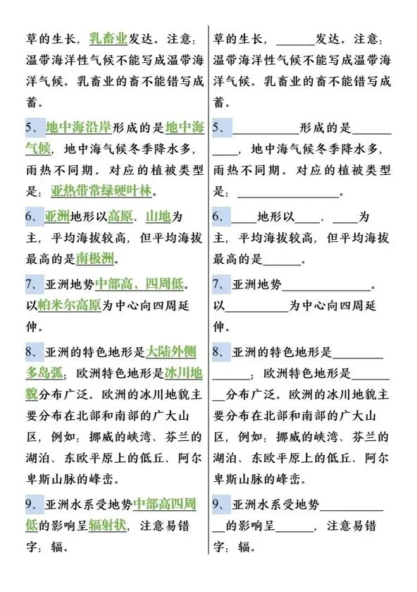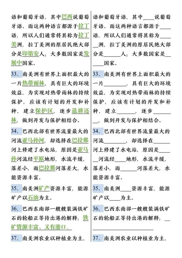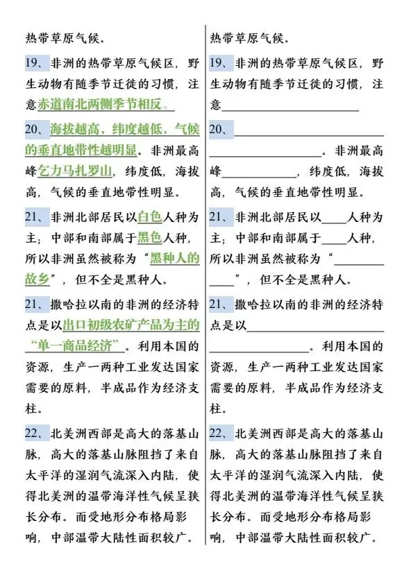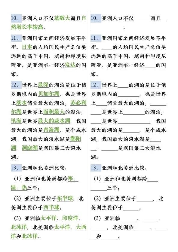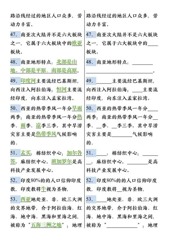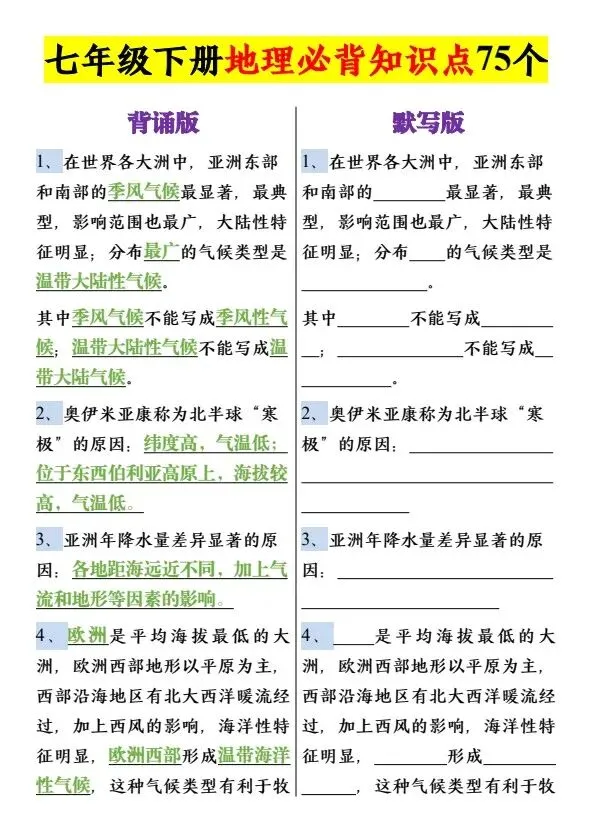 新七年级下册地理必背知识点75个(完整电子版可打印)