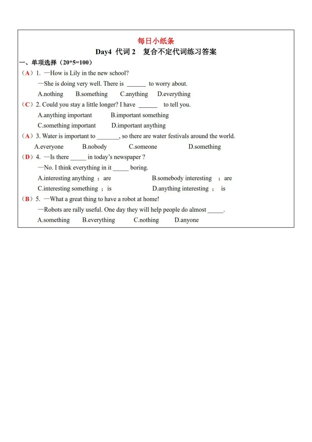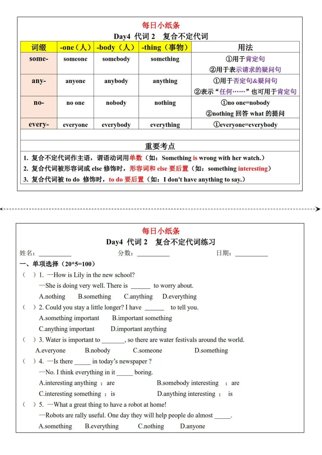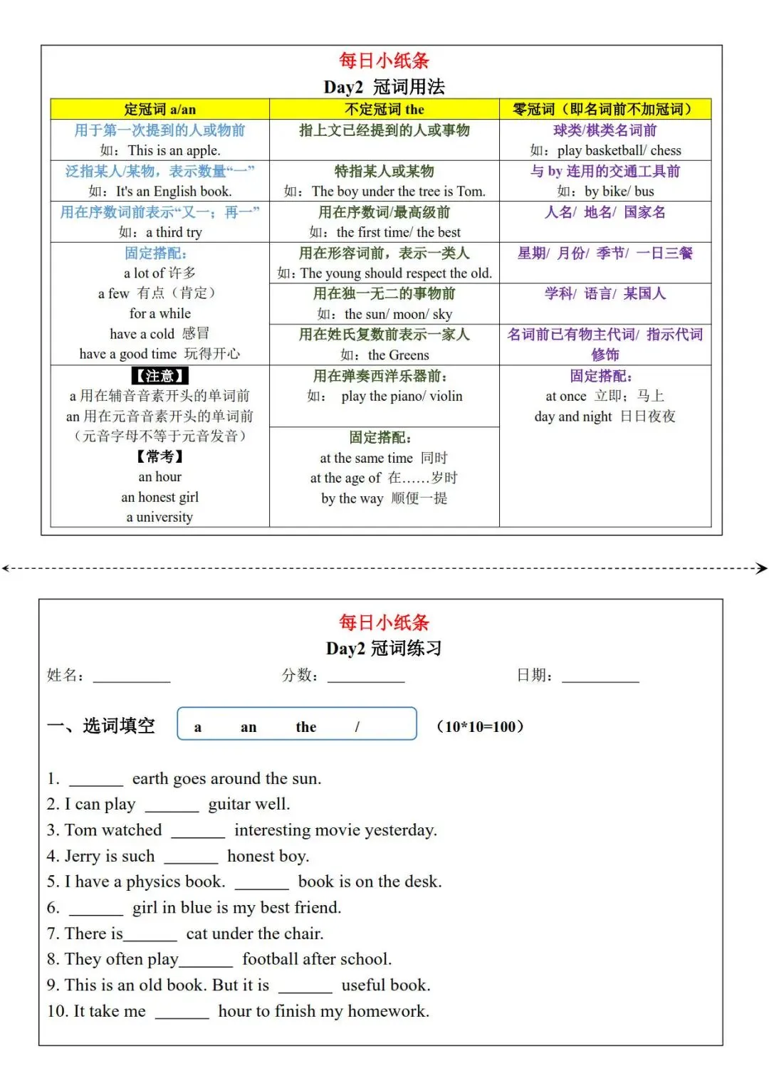 《小学英语语法每日小纸条》,含答案,可免费下载打印