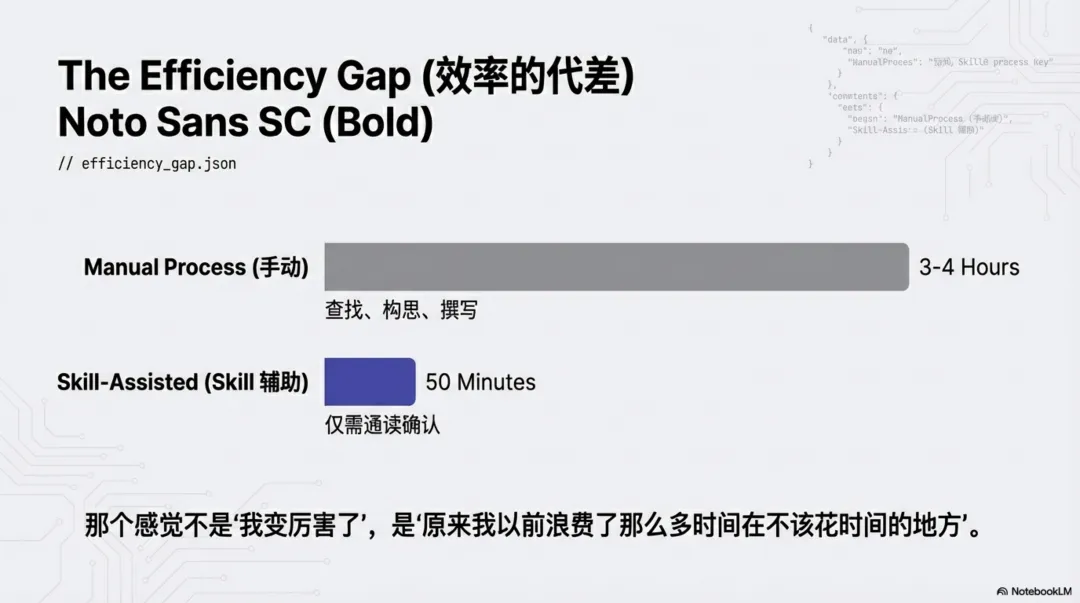 以前这些全靠手动,一篇文章3到4个小时。第一次用完整套Skill写完一篇,看了一下时间,才过了50分钟。当时有点不敢相信,又从头到尾读了一遍,确认质量没掉。那个感觉不是”我变厉害了”,是”原来我以前浪费了那么多时间在不该花时间的地方”。