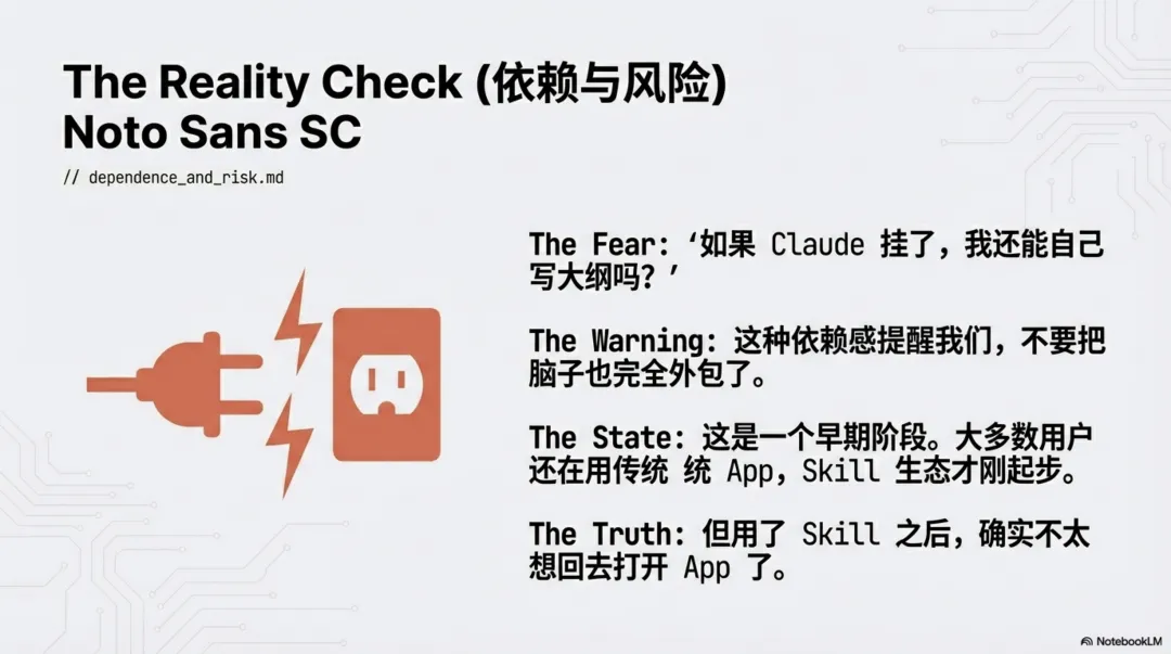 说实话,这话我现在还不敢完全认同。大多数用户还在用传统App,Agent / Skill生态才刚起步。但我自己的体感是,用了Agent / Skill之后确实不太想回去打开App了。