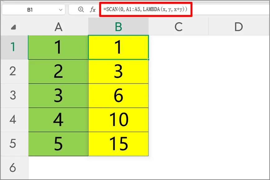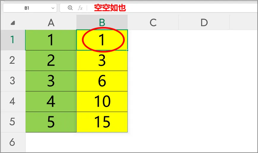 这是一个累积求和的简单例子,我们可以通过编辑栏的公式,清楚地了解其计算逻辑。