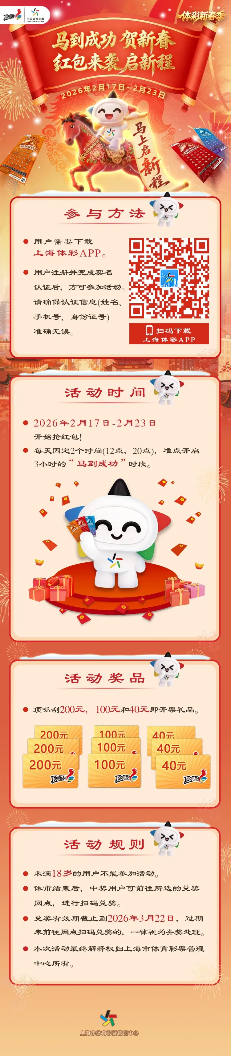 红包倒计时 | 上海体彩APP“马到成功”贺新春活动今晚收官!