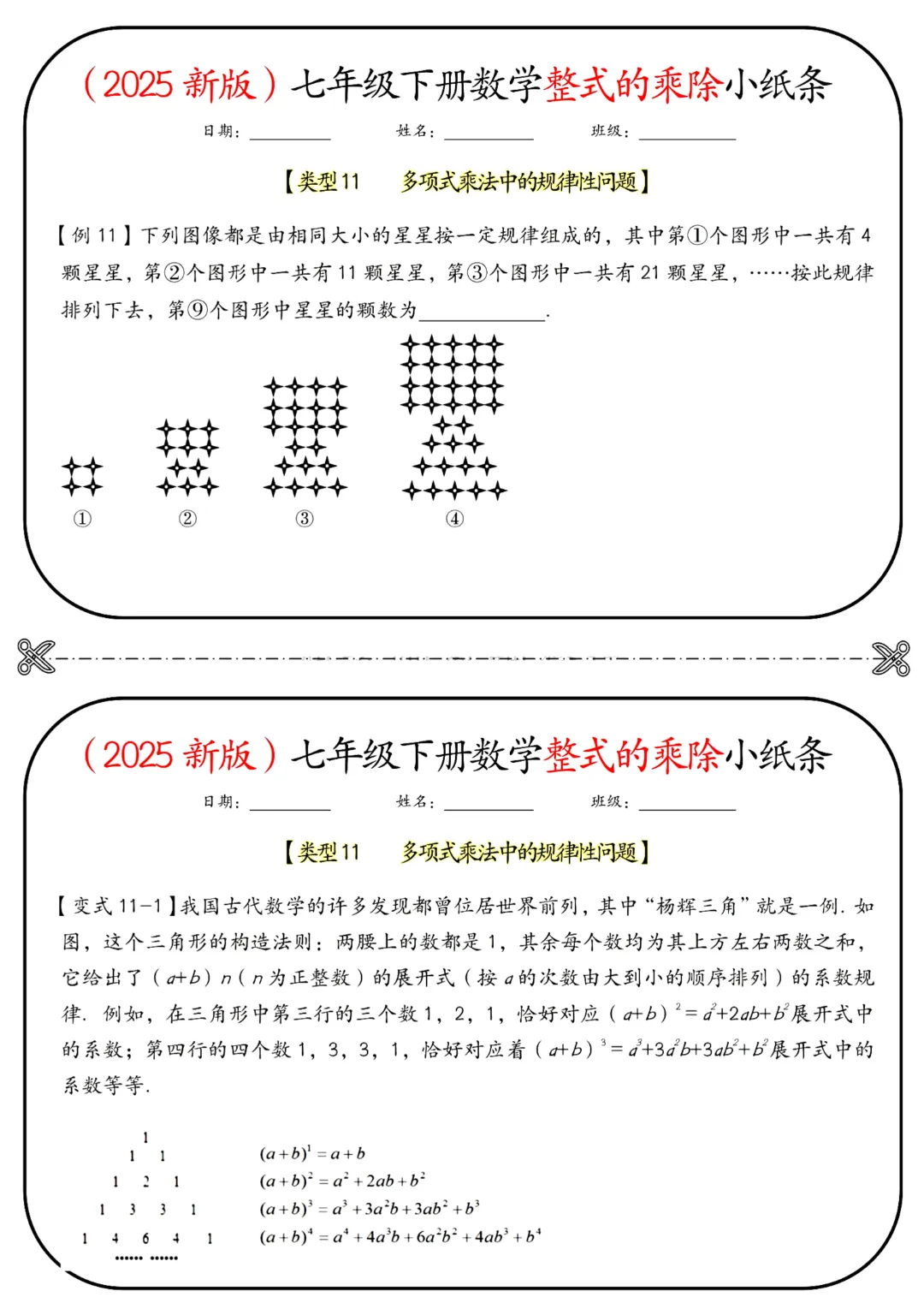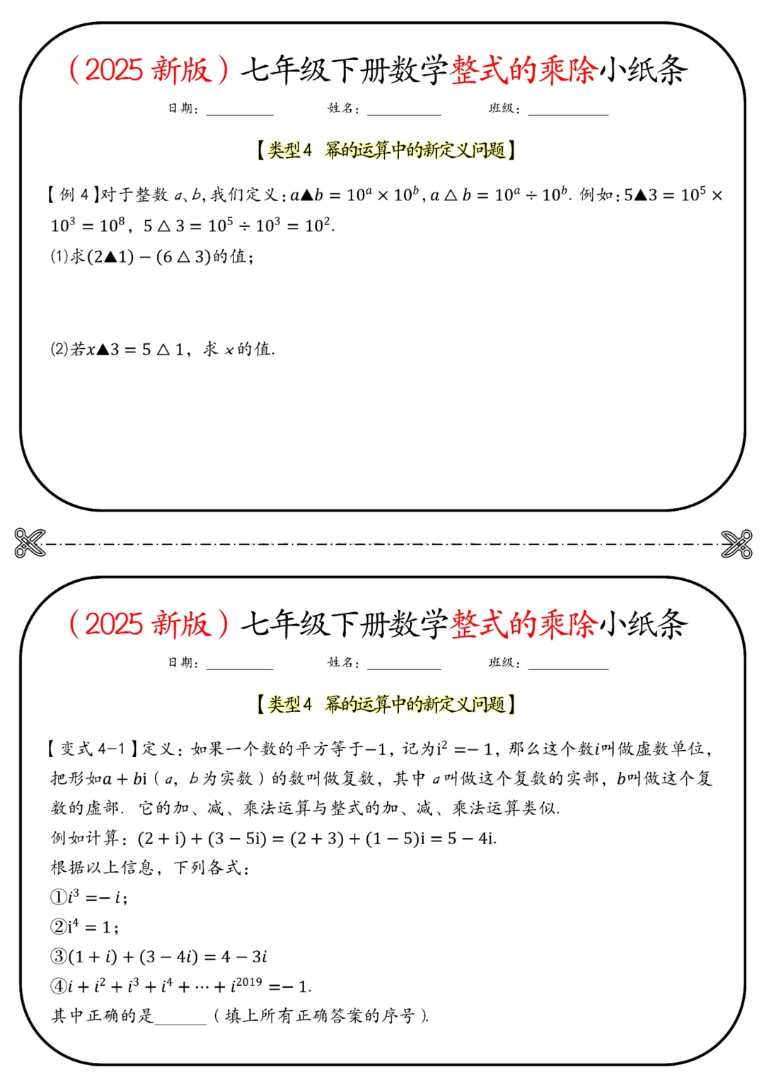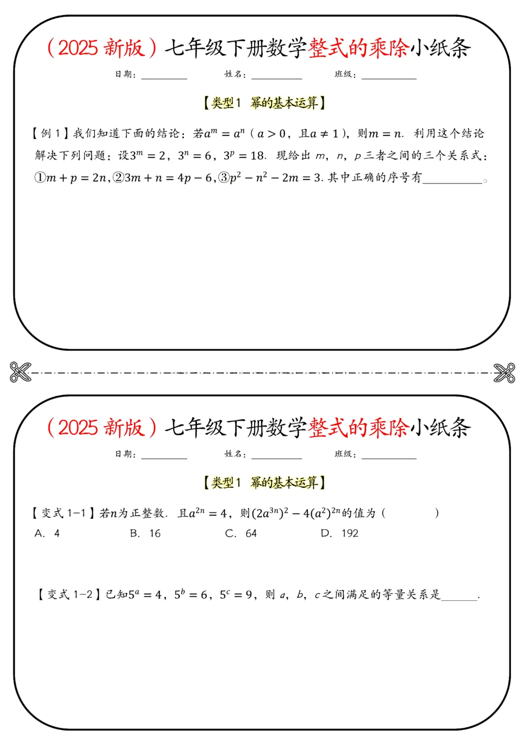 🌟今天给家长们分享的是2026春七年级下册数学北师大版《整式的乘除小纸条》(带答案)完整高清电子版可打印