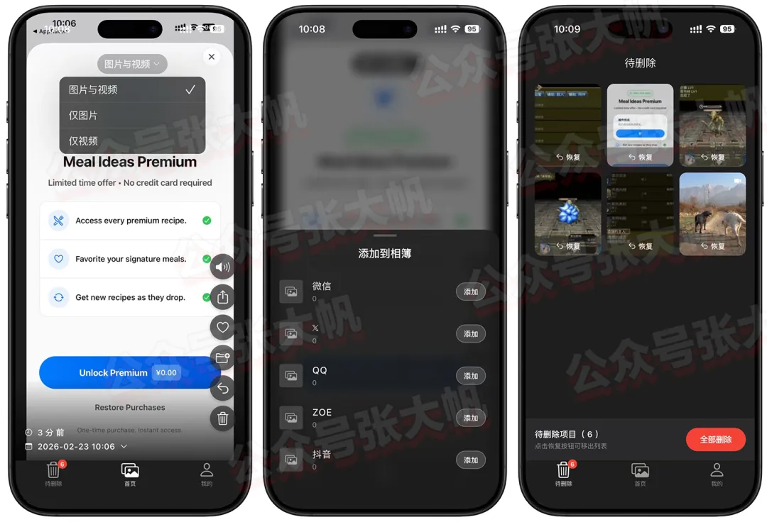 软件融合了“批量清理” 与 “随机回顾” 双重功能,可以像刷短视频一样快速整理删除照片视频、分类相册、随机查看。