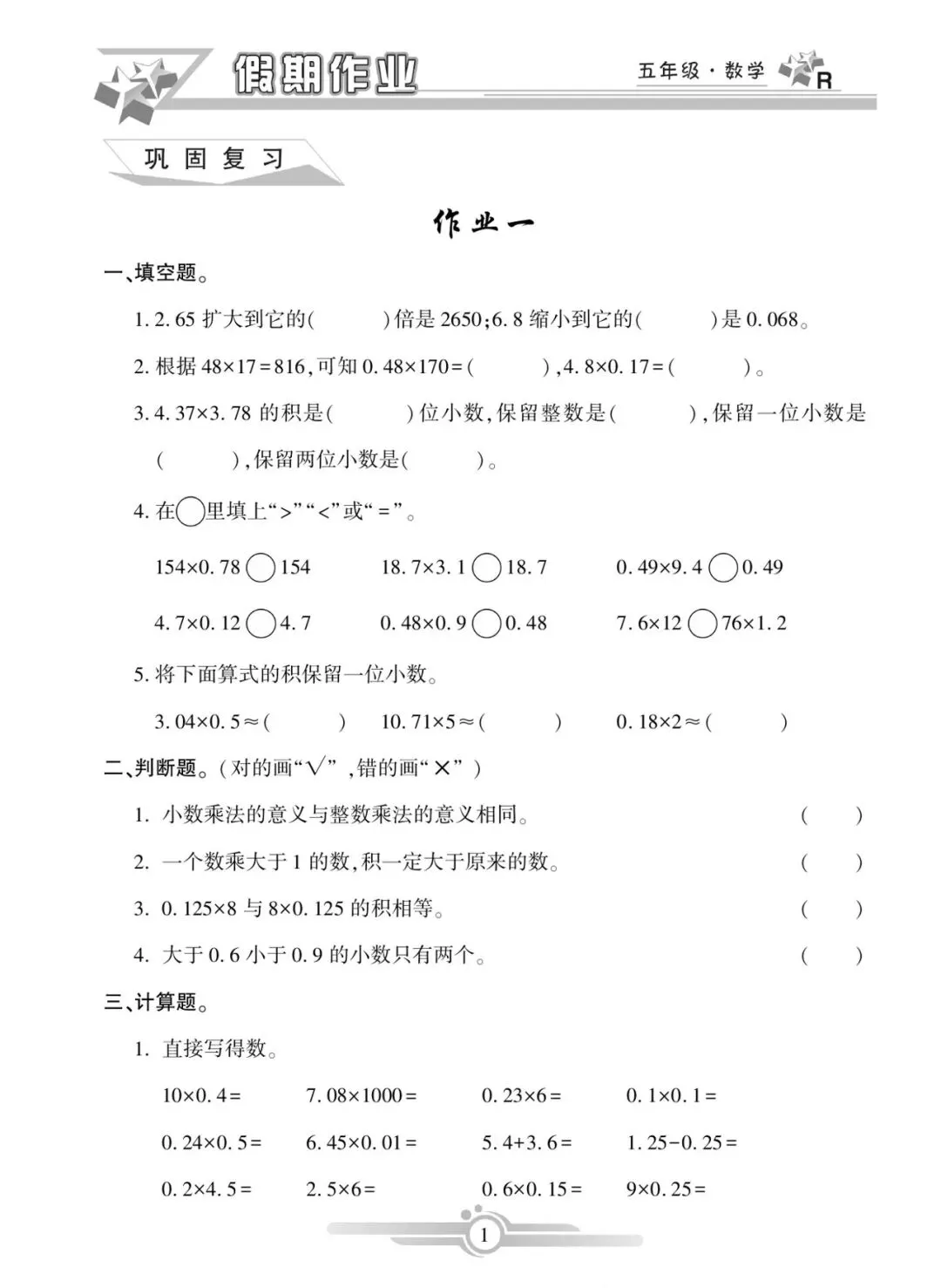 【免费下载】四年级(下)数学 寒假作业天天练《人教版》,PDF电子版,共47页,可打印