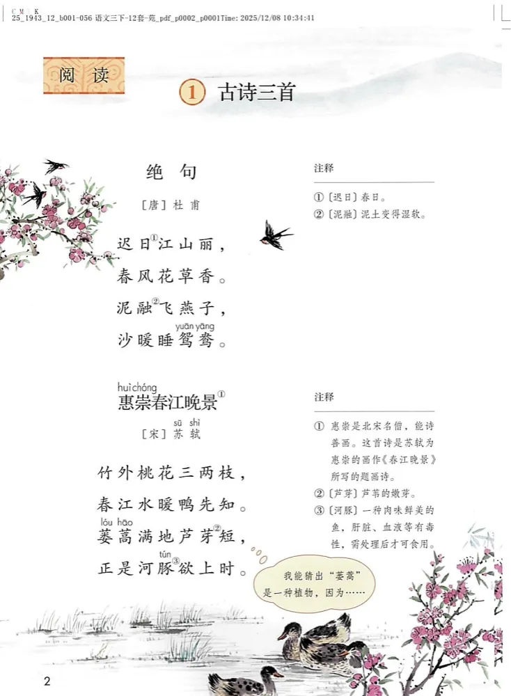 【寒假教材预习】26春新版语文三年级下册电子课本(变化巨大,2025年10月更新)下册教材,高清免费下载,网盘分享