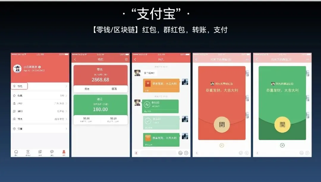 ✅ 支付交易:转账、红包、收款、电商支付,安全便捷