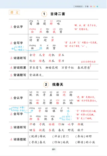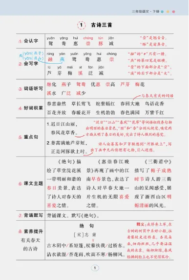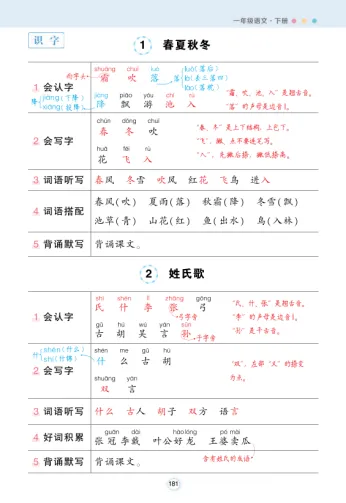 小学语文《每课背记清单》一年级下册(电子版,可下载打印,每课重点,寒假预习必背)