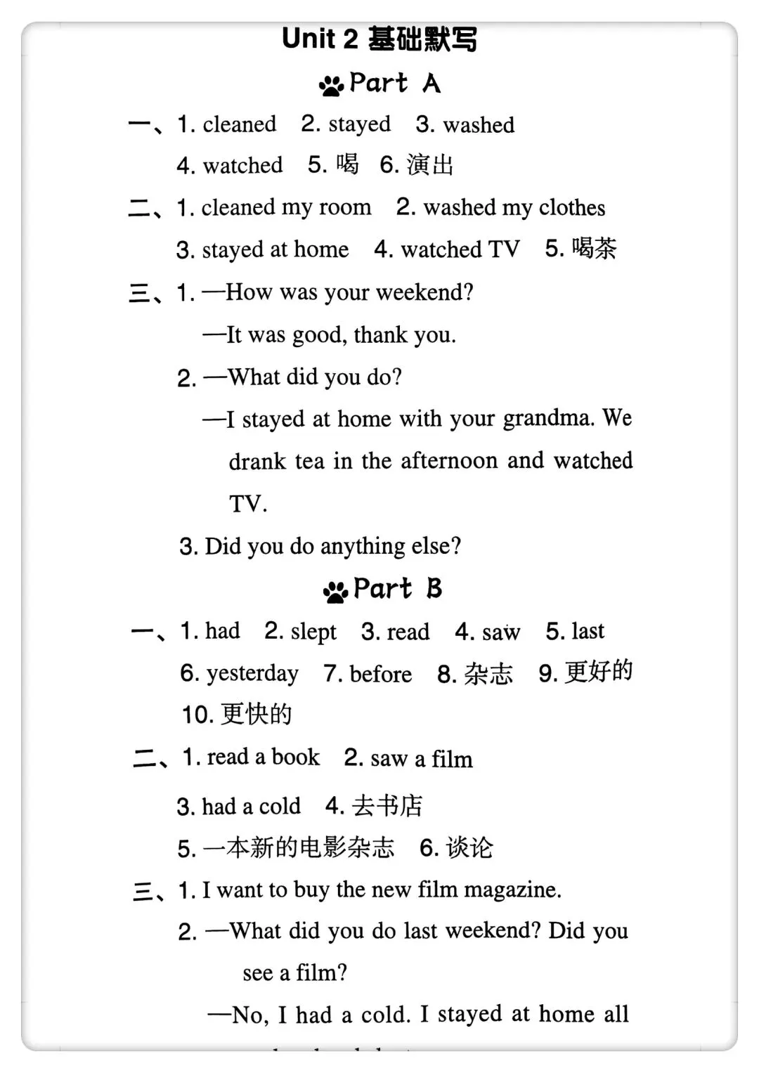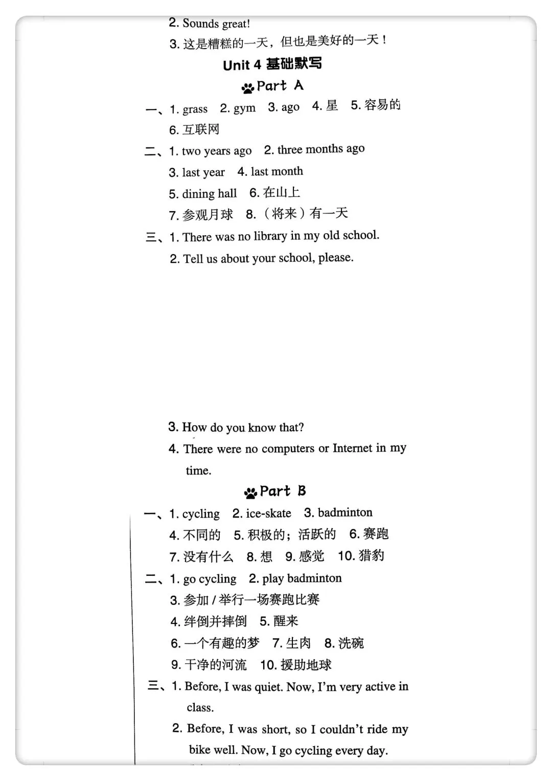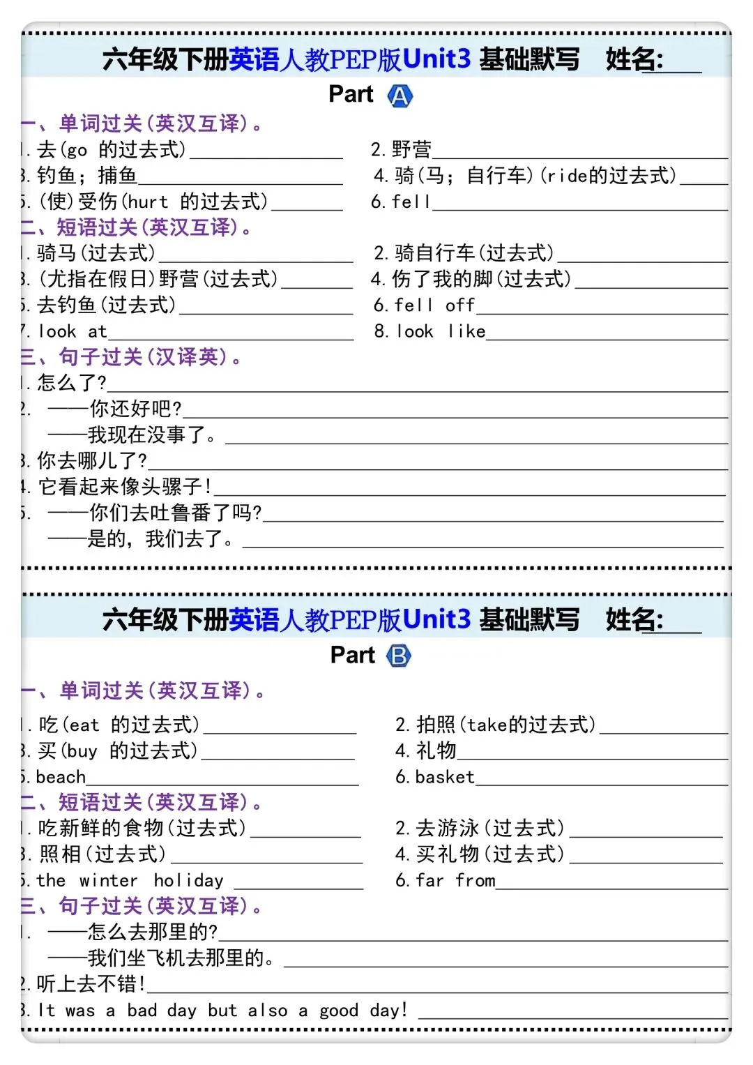 -      【免费下载】四年级(下)英语 Unit1-6 默写纸《人教版PEP》,PDF电子版,共7页,可打印