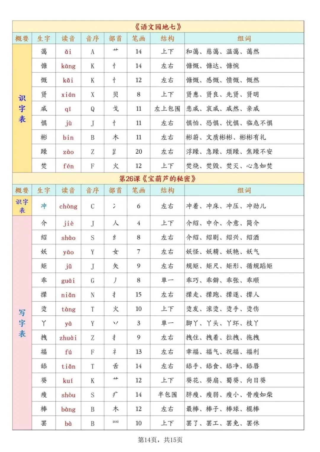 ✨Hi~大家好!今日分享的是,最新版·26学年春四年级语文下册课后生字表预习(注音+音序+部首+笔画+组词+结构)共15页,老师刚发的,有需要的家长,给孩子打印出来,一课一贴,方便孩子预习复习生字基础知识,查漏补缺、巩固提升!欢迎收藏转发💗