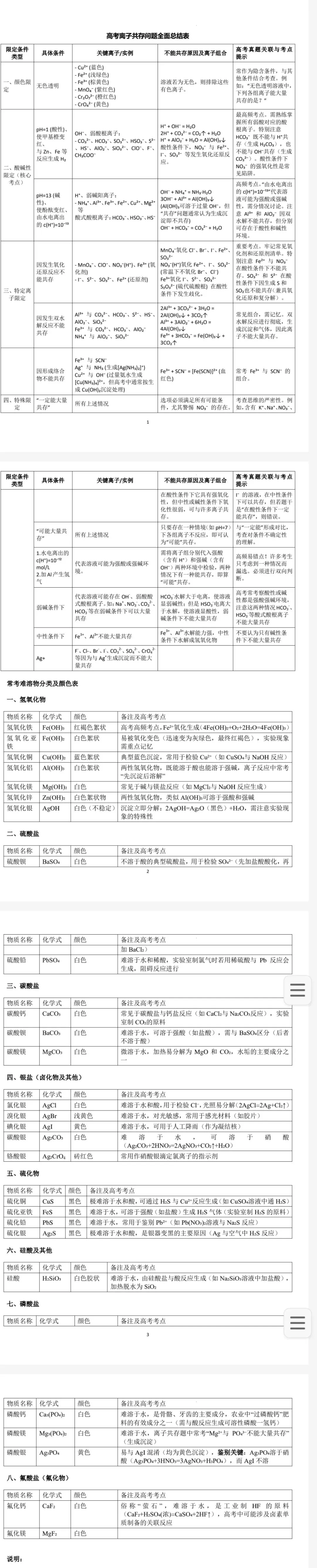 「高考离子共存问题全面总结表 .pdf」
