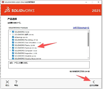 12.这个是产品的选择,有一个solidworks electrical,这个强烈建议取消勾选,不然会有一半的概率装不上去主程序。