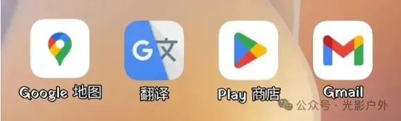 第一排从左到右,Google地图是用来查路线、导航和探索周边地点的;旁边的翻译软件可以帮你解决语言沟通问题,支持多种语言的文本和语音互译;Play商店是安卓系统的应用商店,可以在这里下载各种APP;最右边的Gmail是谷歌的邮箱服务,用来收发电子邮件。