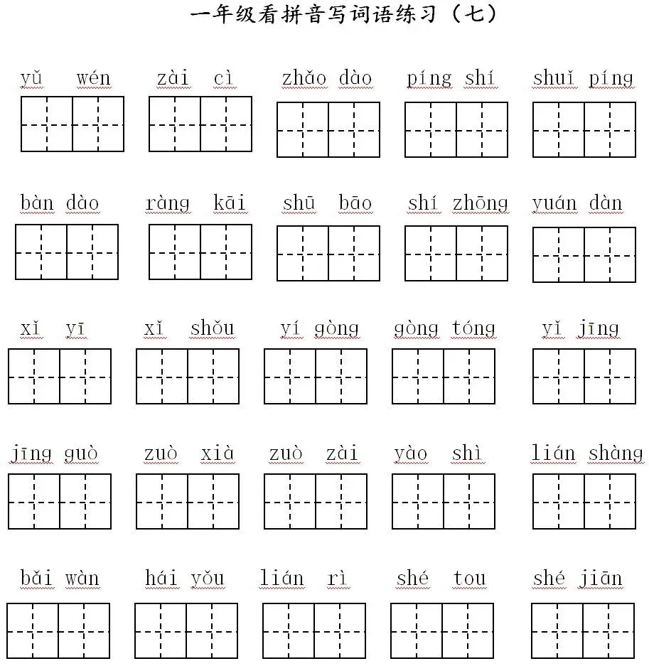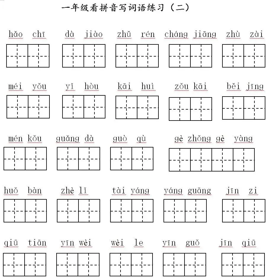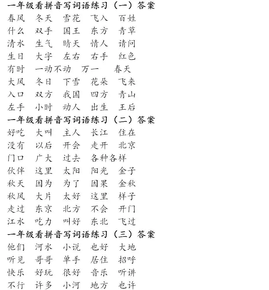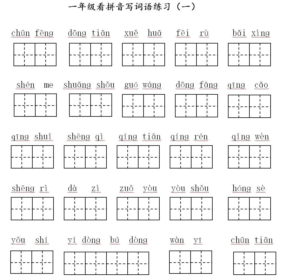 寒假预习:一年级下册,看拼音写词语(可打印,含答案)