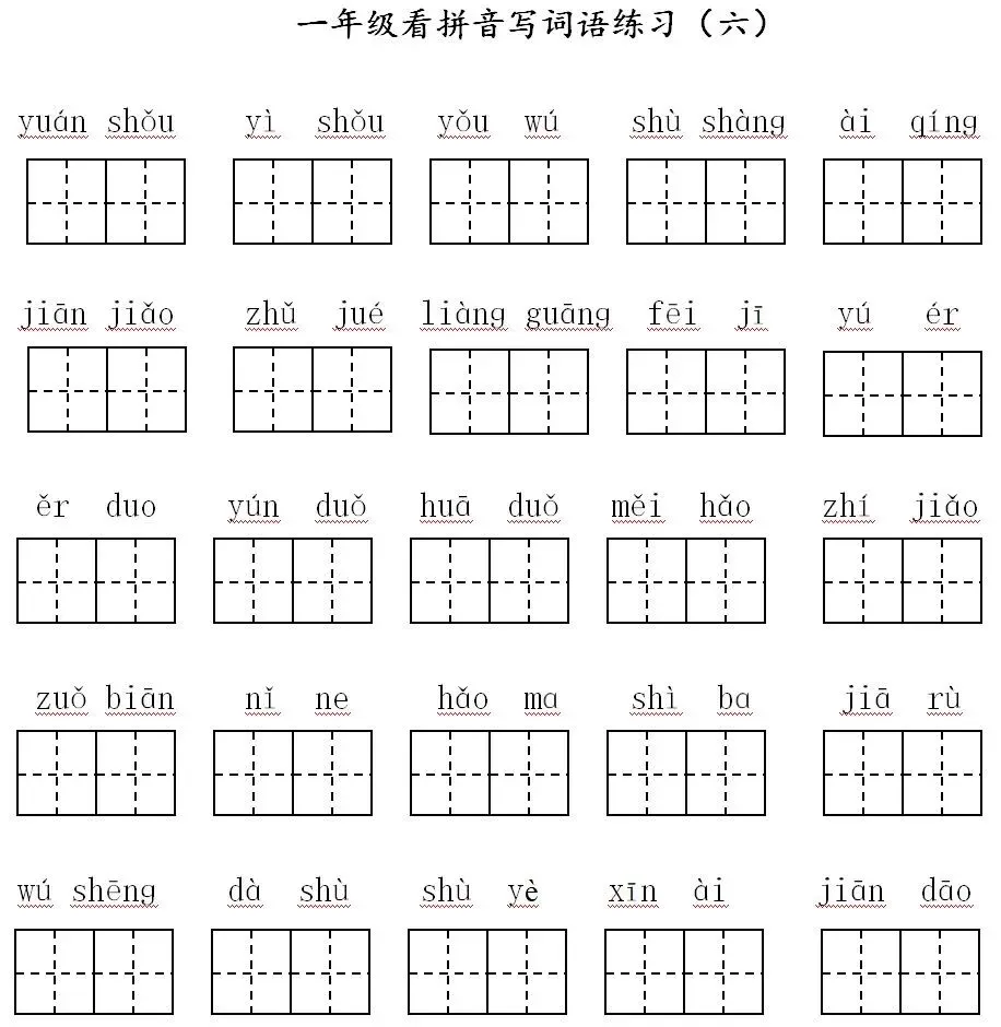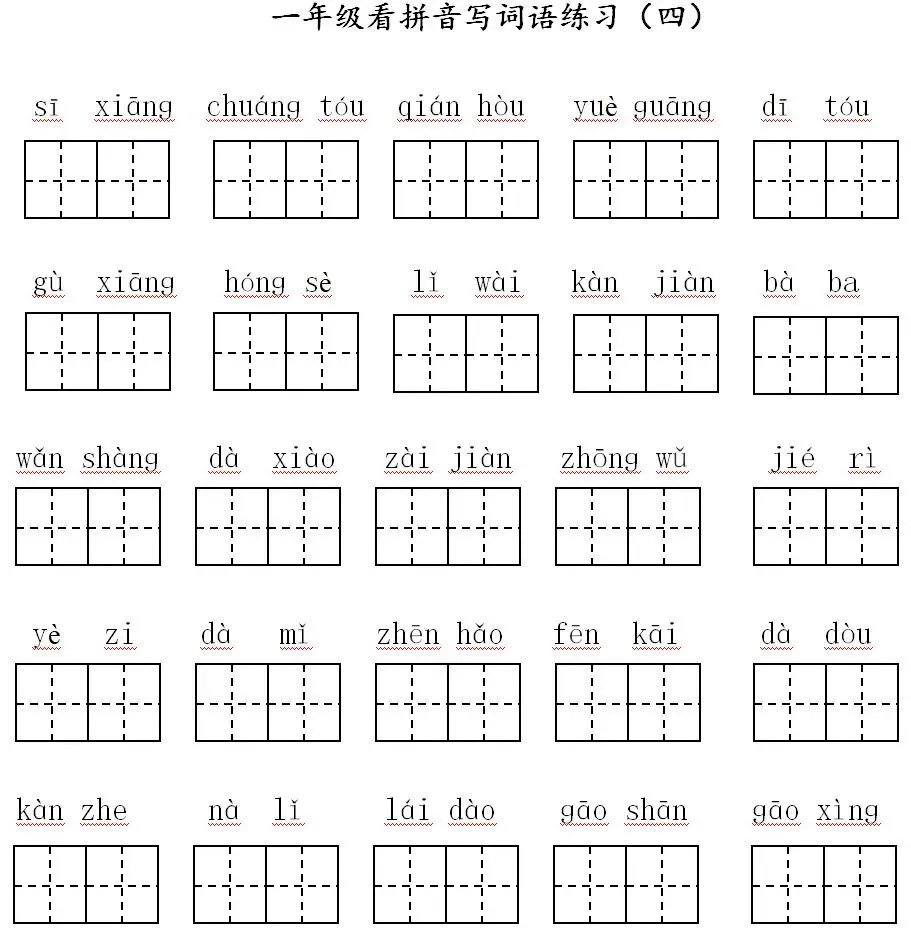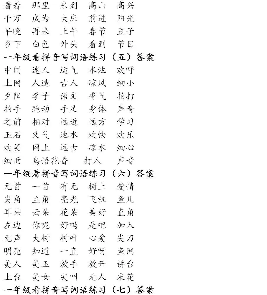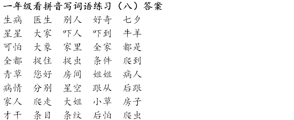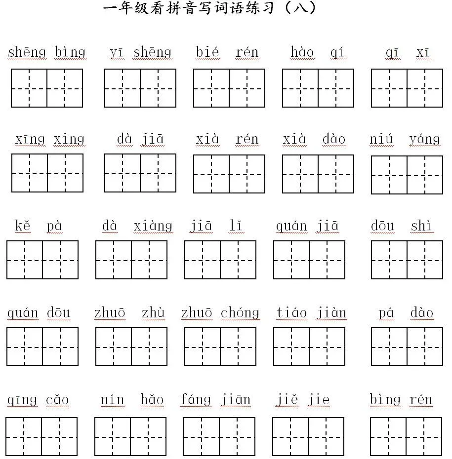 寒假预习:一年级下册,看拼音写词语(可打印,含答案)