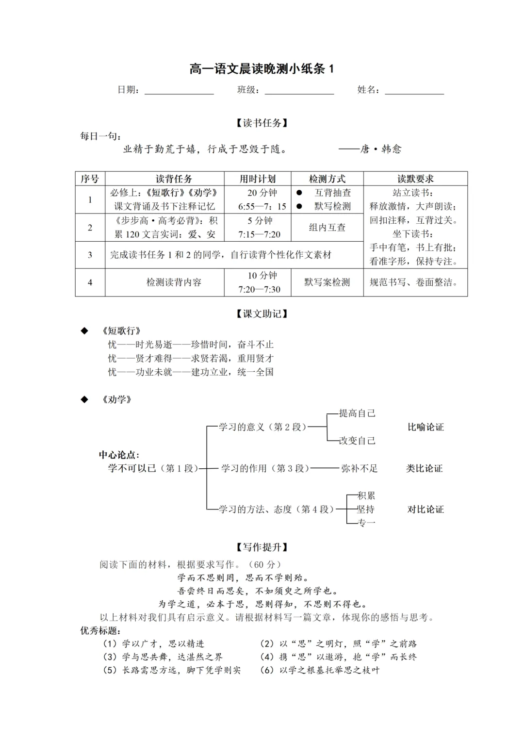 📢上海高一语文提分,晨读+晚测是关键!避免盲目积累,这份专属小纸条直接帮你省时间~