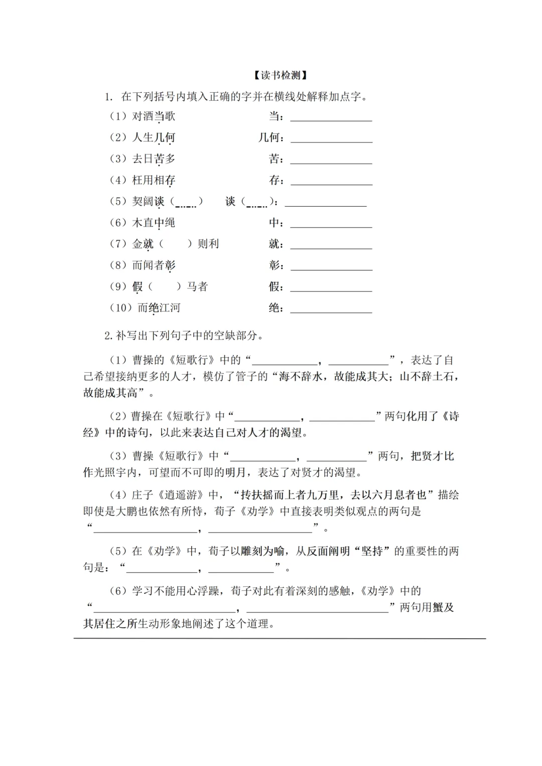 寒假必背!上海高一语文下学期早背晚默(可打印)
