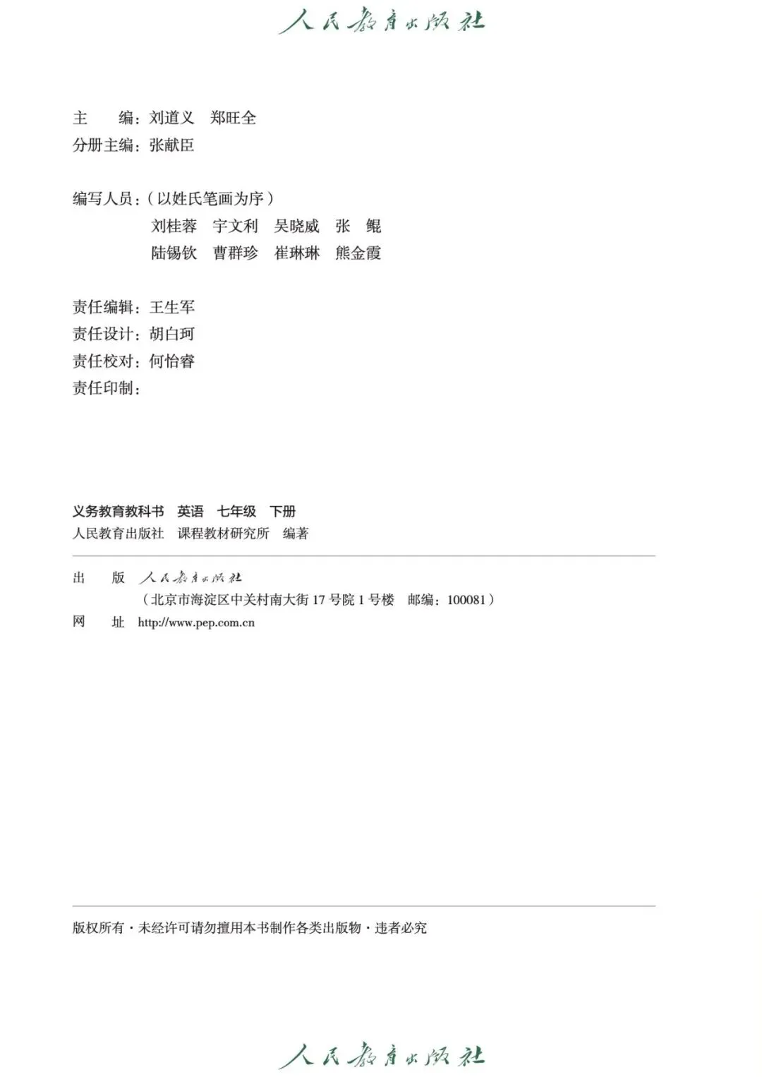 2026新人教版英语七年级下册电子课本PDF(高清正式版)