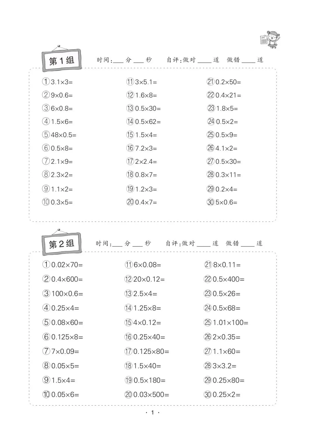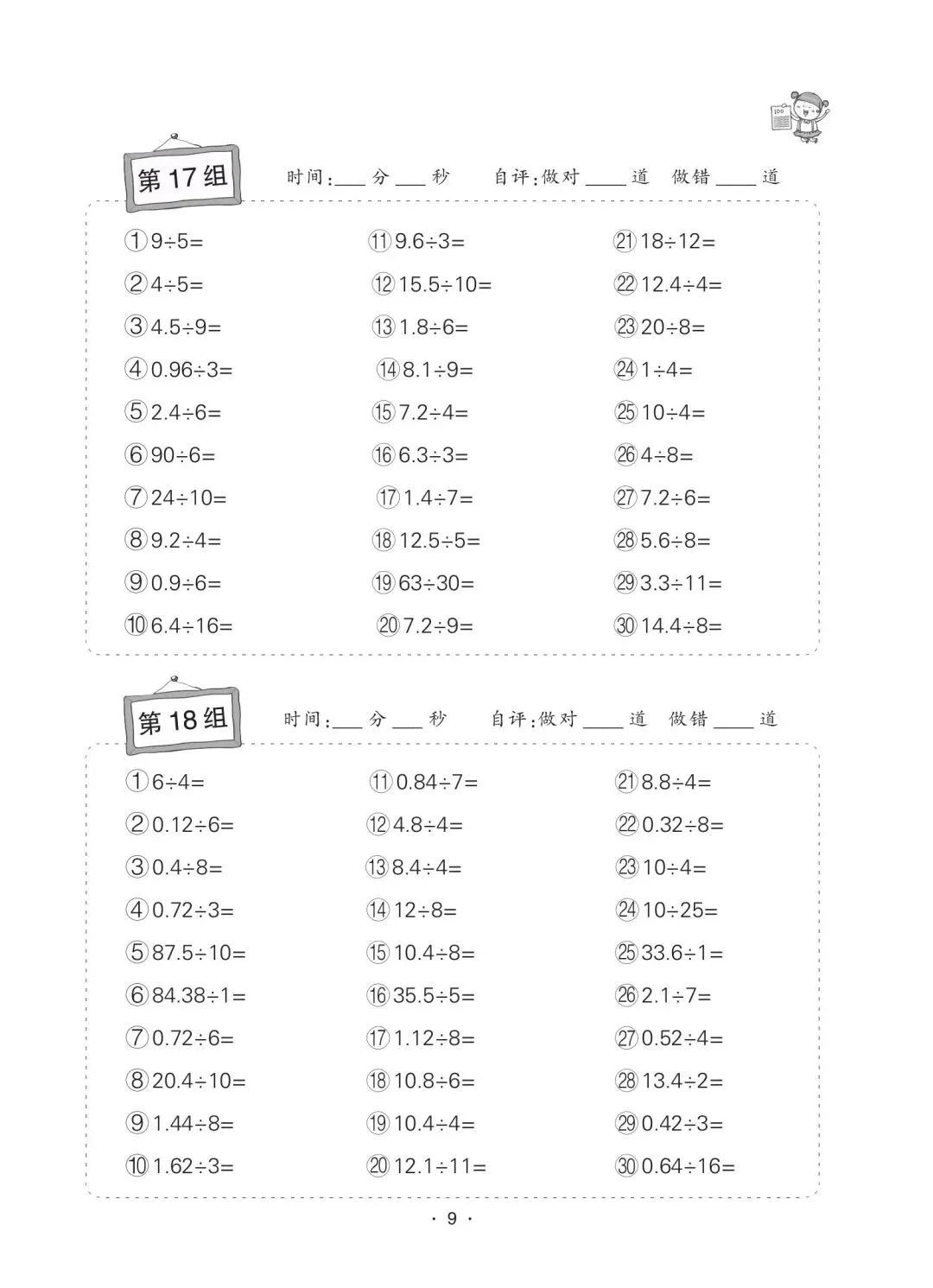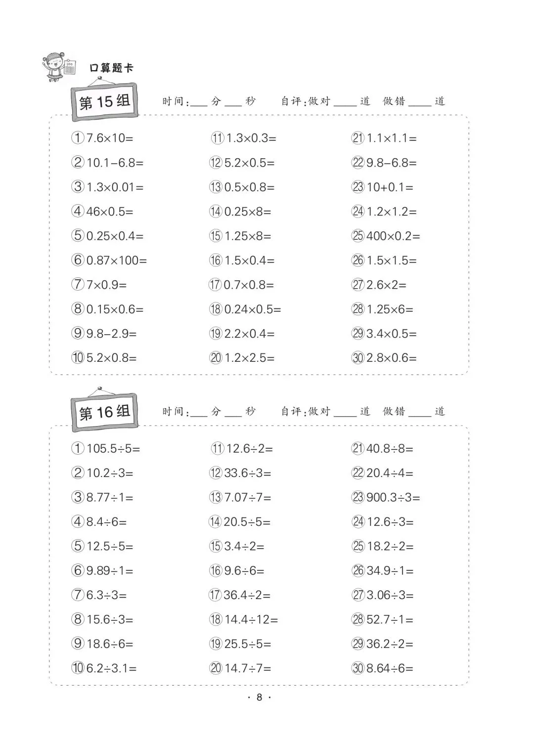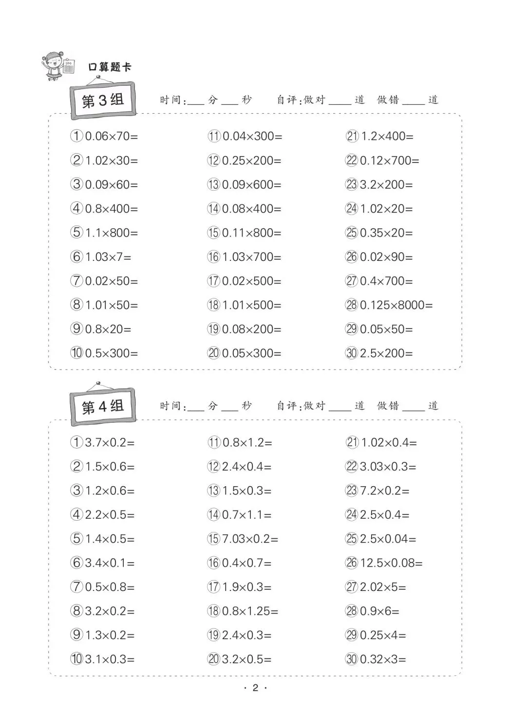 新版五年级下册数学天天练口算题卡高清电子版可打印
