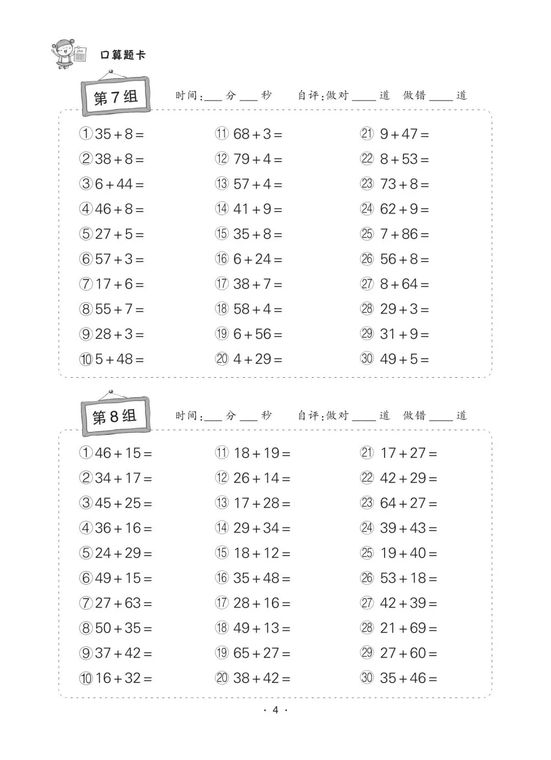 新版二年级下册数学天天练口算题卡高清电子版可打印