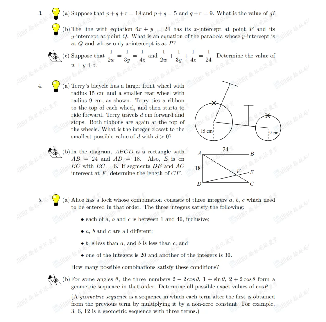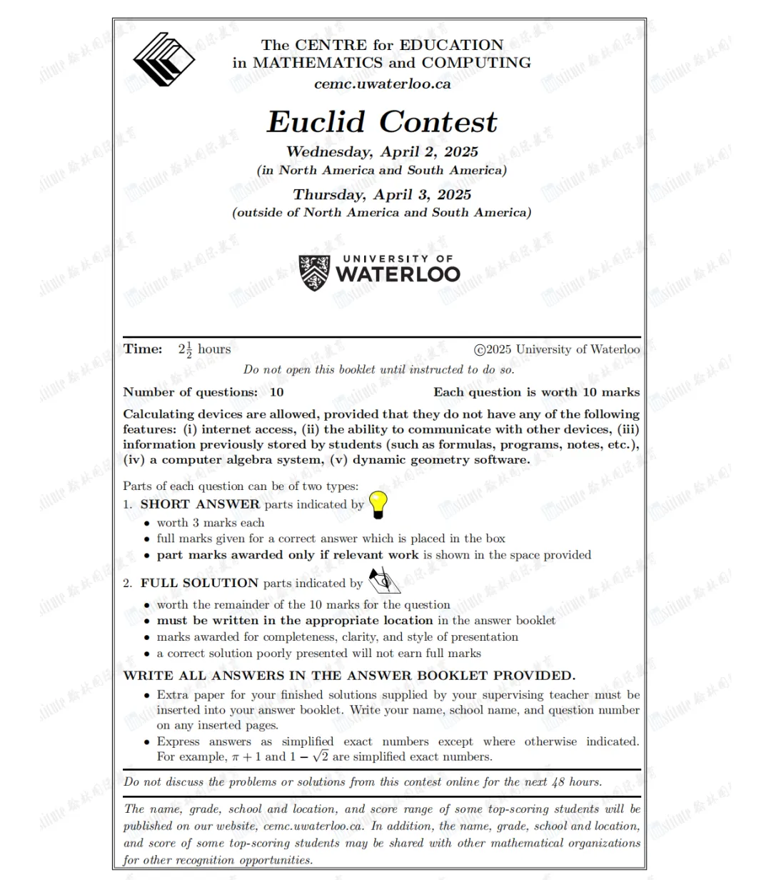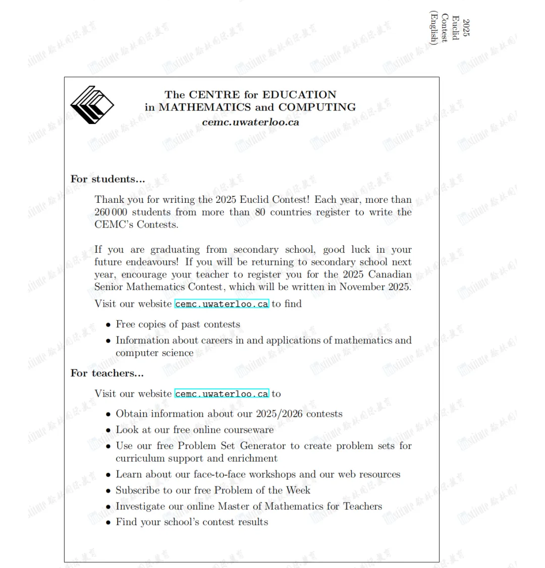 领取欧几里得数学竞赛真题&解析!高清电子版,可打印!