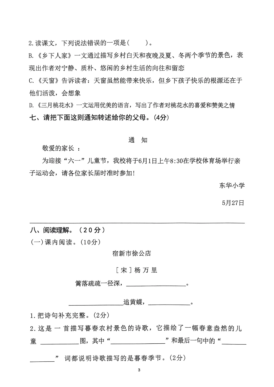 26年春四年级下册人教部编版语文 《1-8单元拔尖测试卷》(8套附答案)可打印