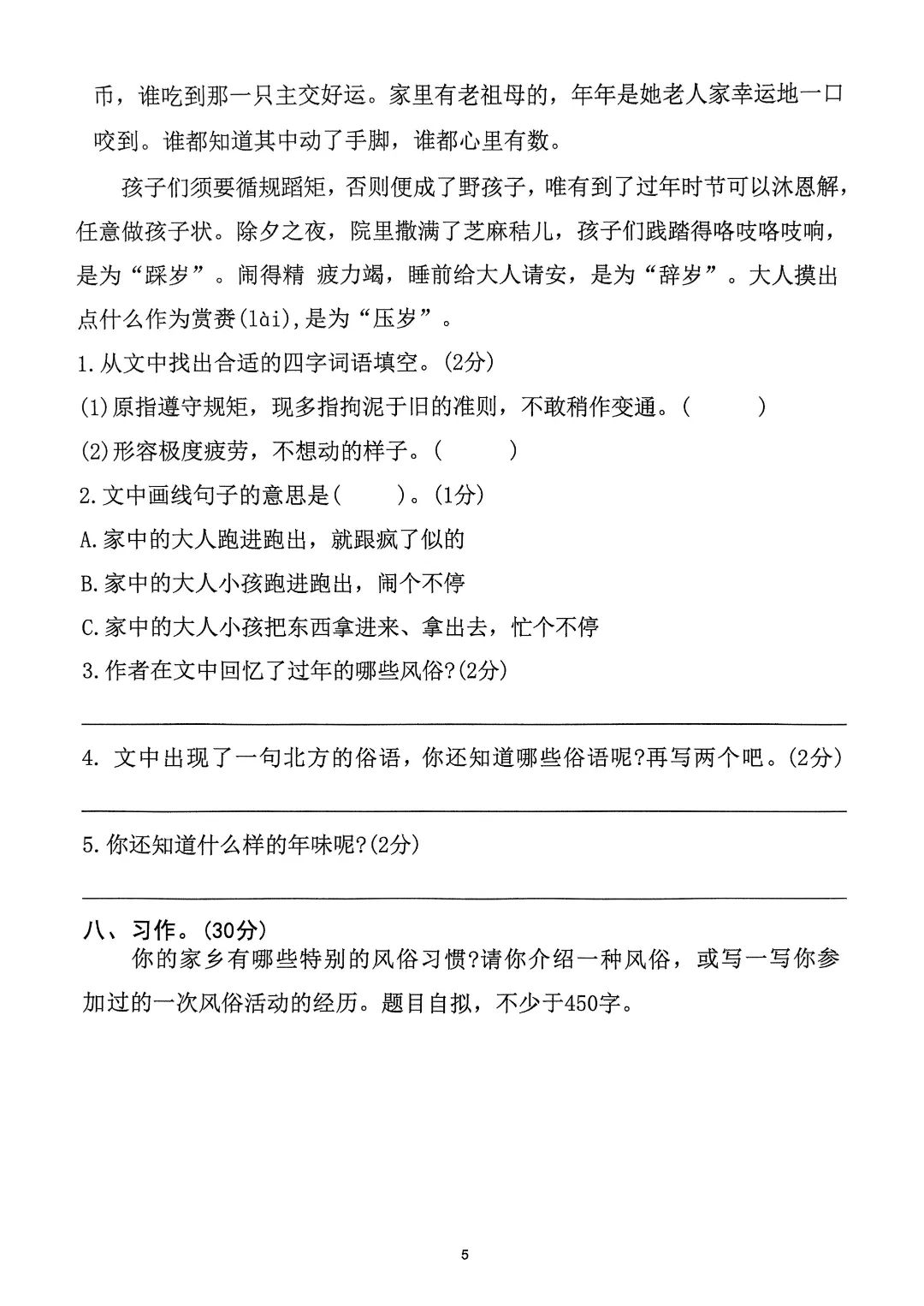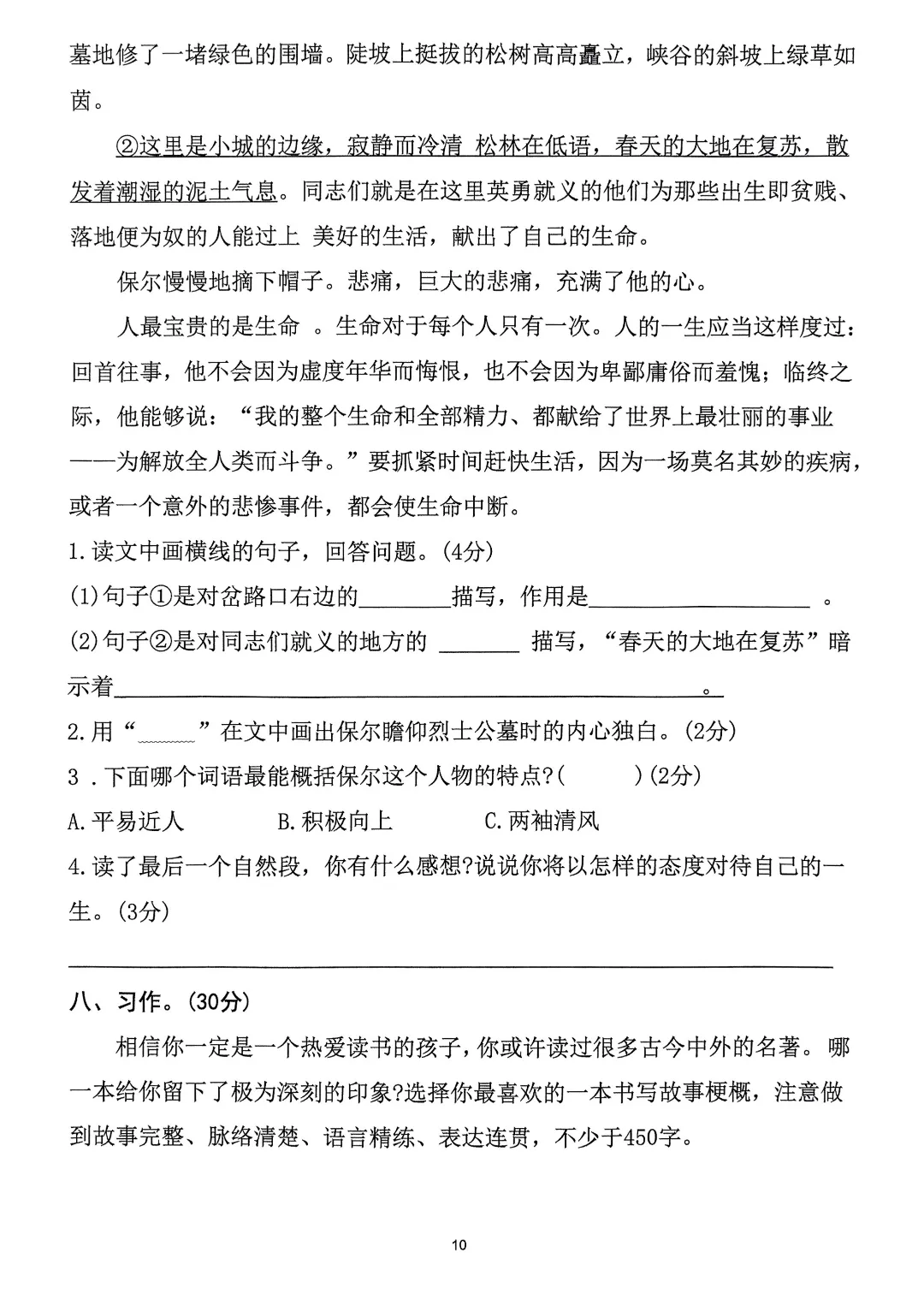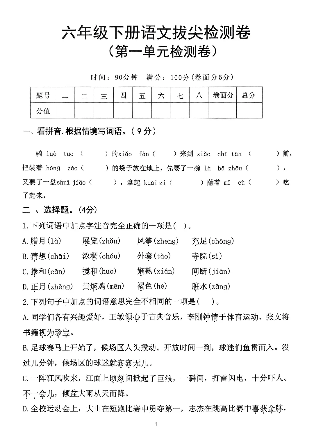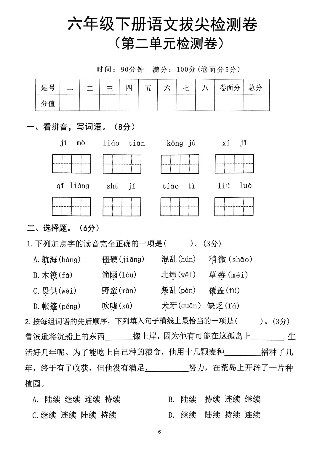 26年春六年级下册人教部编版语文 《1-8单元拔尖测试卷》(8套附答案)可打印