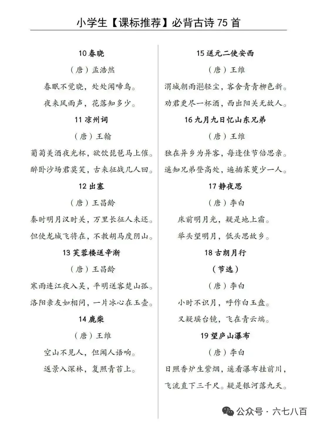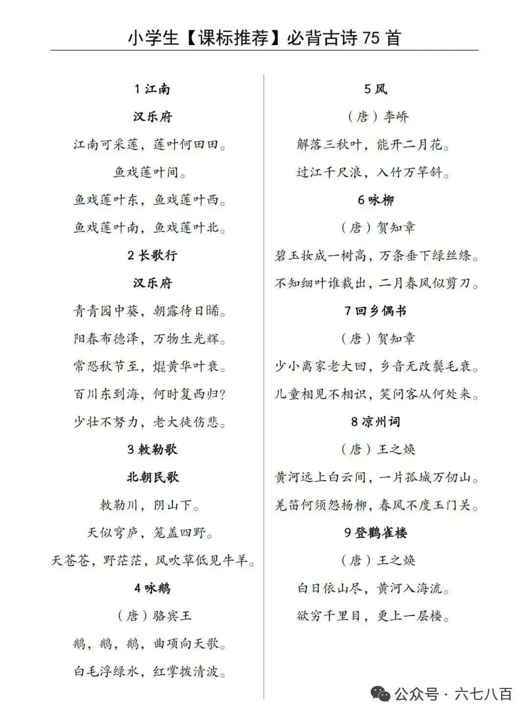 2025新版小学必背古诗词75首完整版(1-6年级新课标适用)|带拼音+注释+完整可下载打印