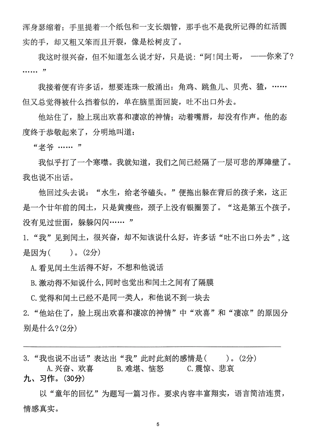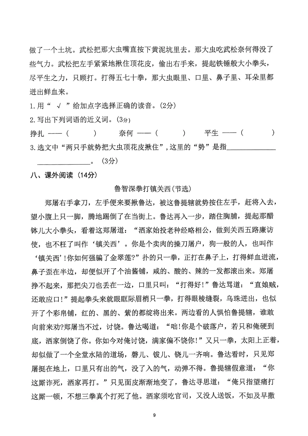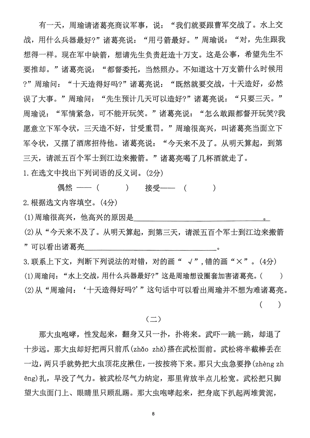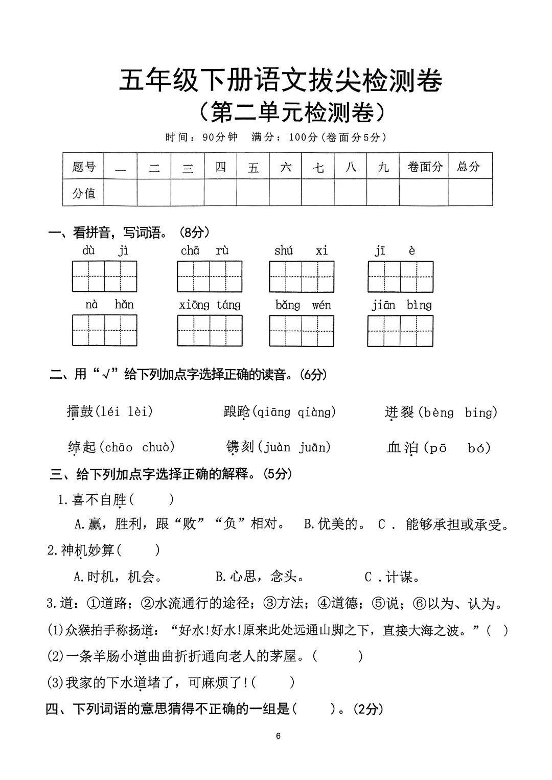 26年春五年级下册人教部编版语文 《1-8单元拔尖测试卷》(8套附答案)可打印