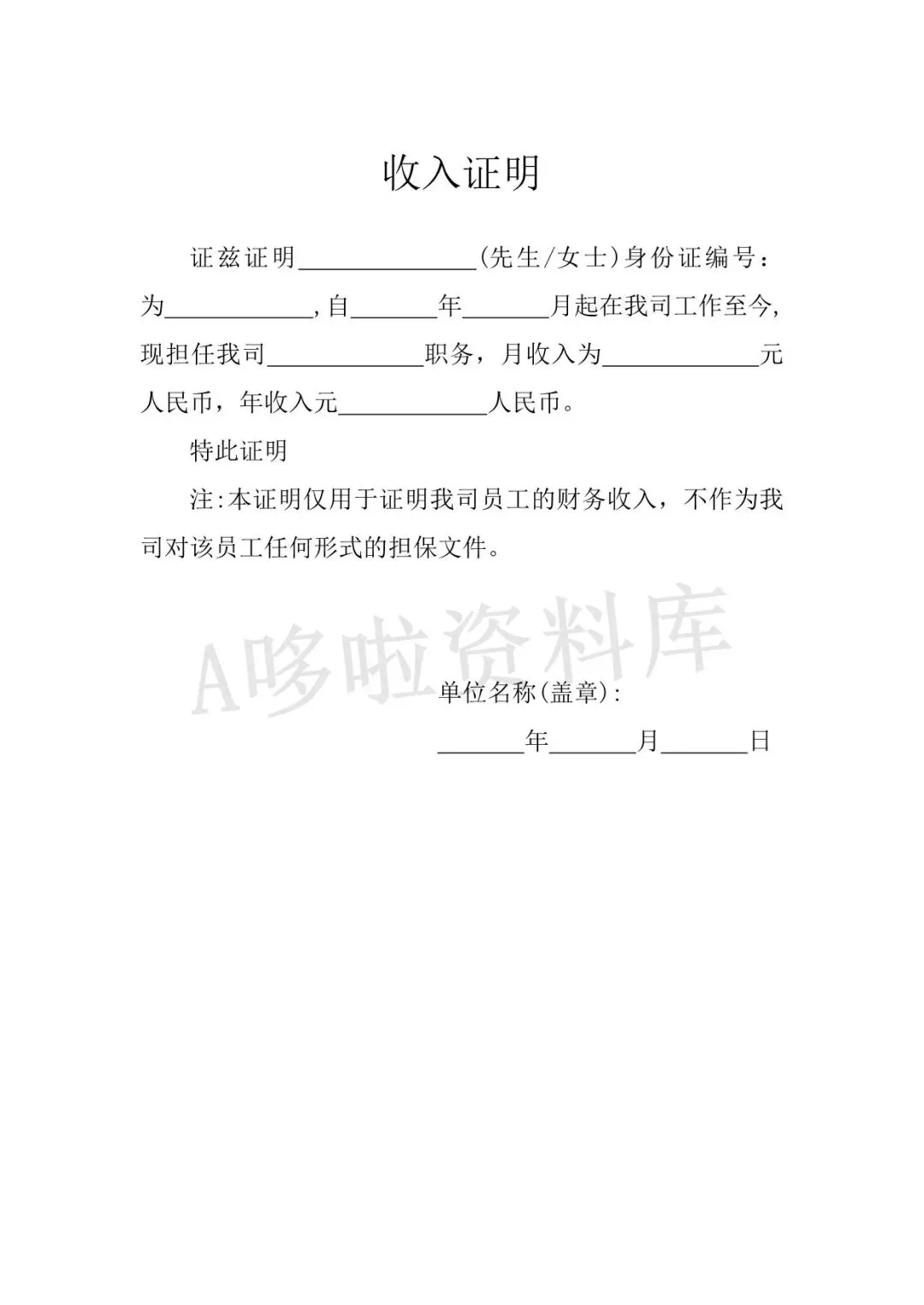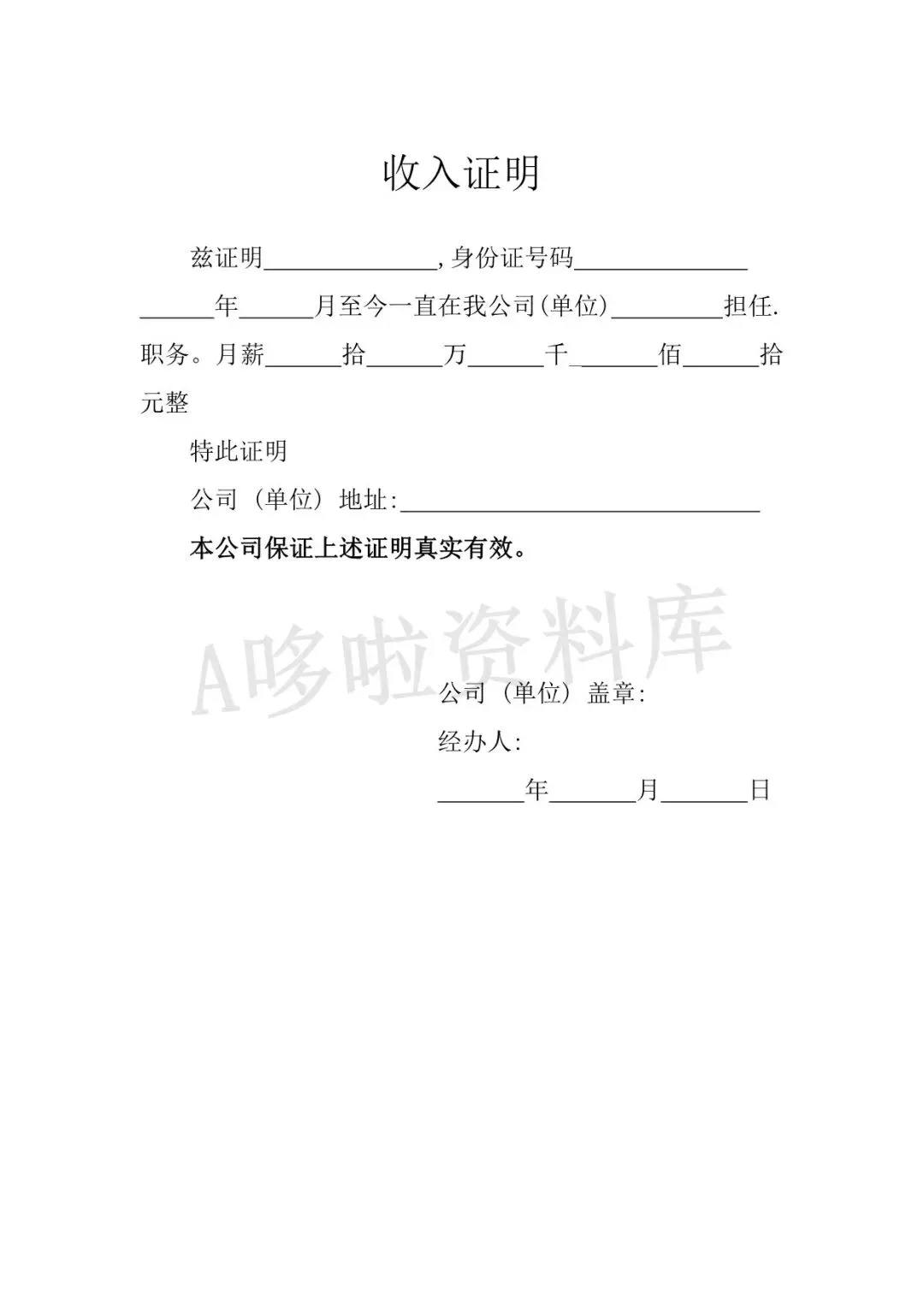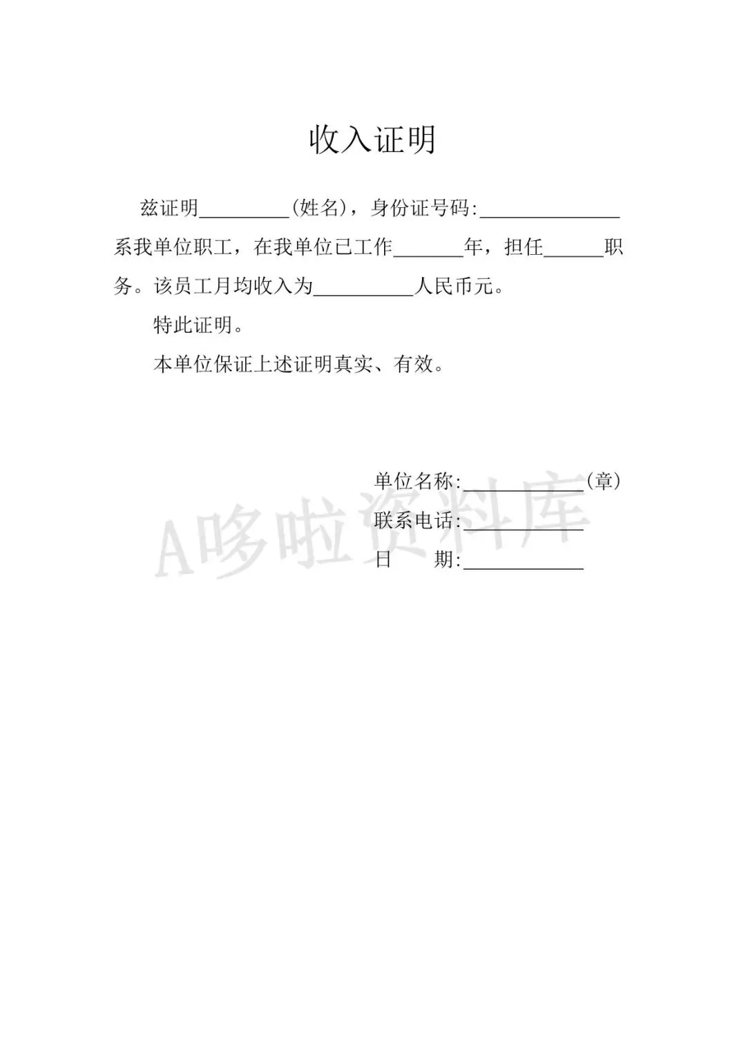 收入证明模板(word电子版下载!)