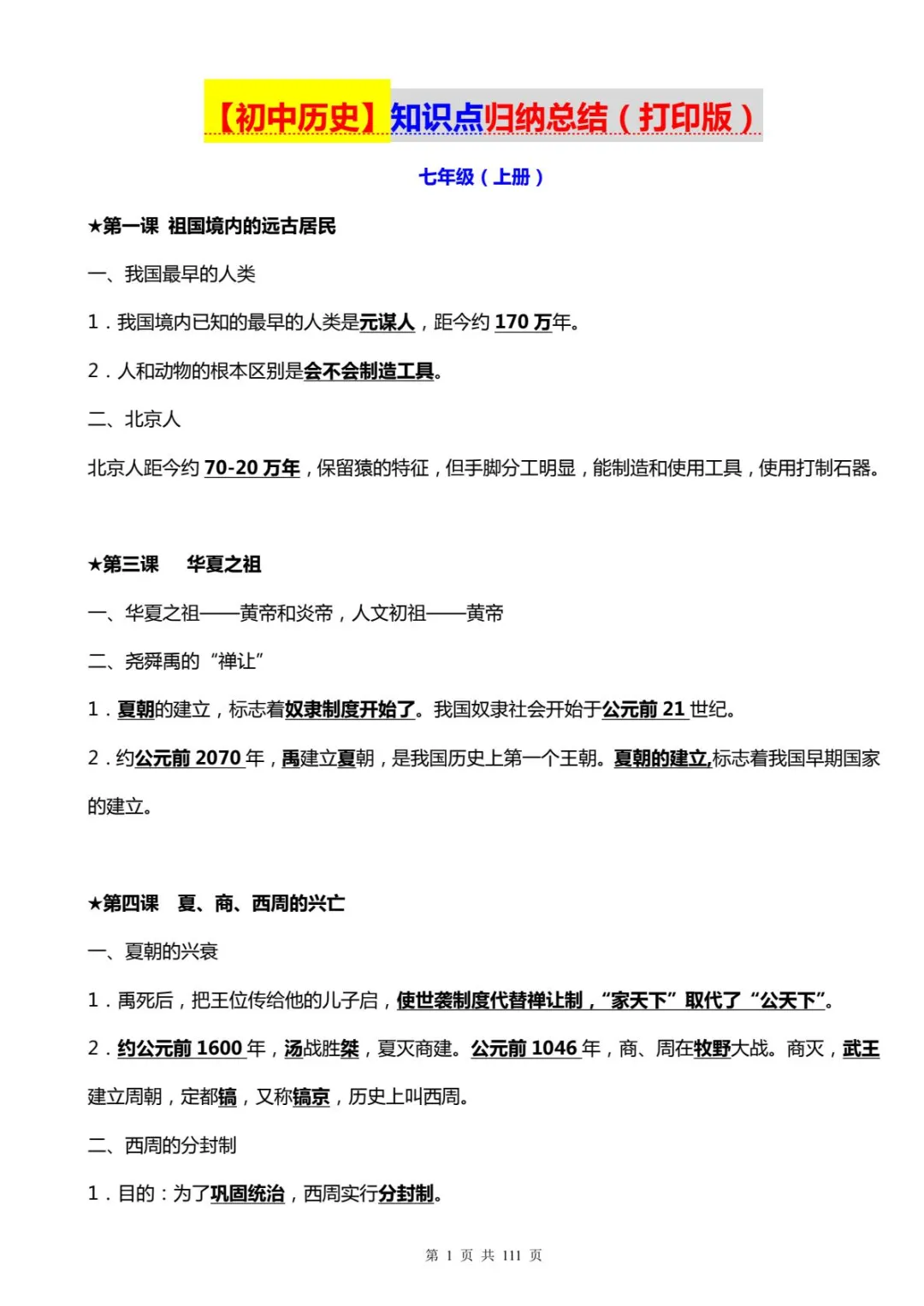 本期给各位带来的是:初中历史知识点归纳汇总 (超详细!可打印!) 如有需要,欢迎收藏、转发,实时更新! 保存后若有更新也会同步提示!